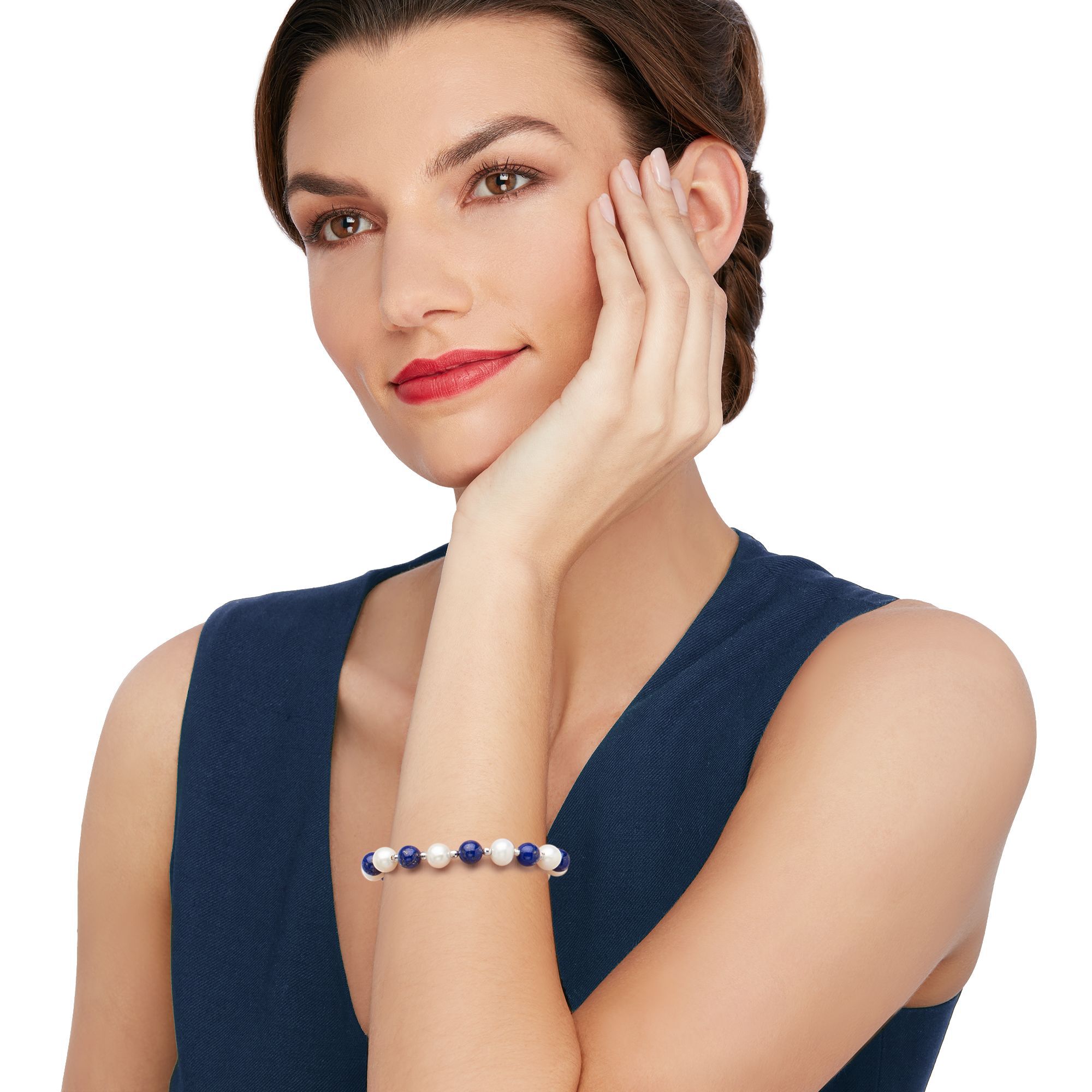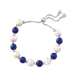 Lapis and 8-9mm Cultured Pearl Bolo Bracelet in Sterling Silver