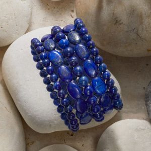 Lapis Jewelry Set: Five Bead Stretch Bracelets. 7″