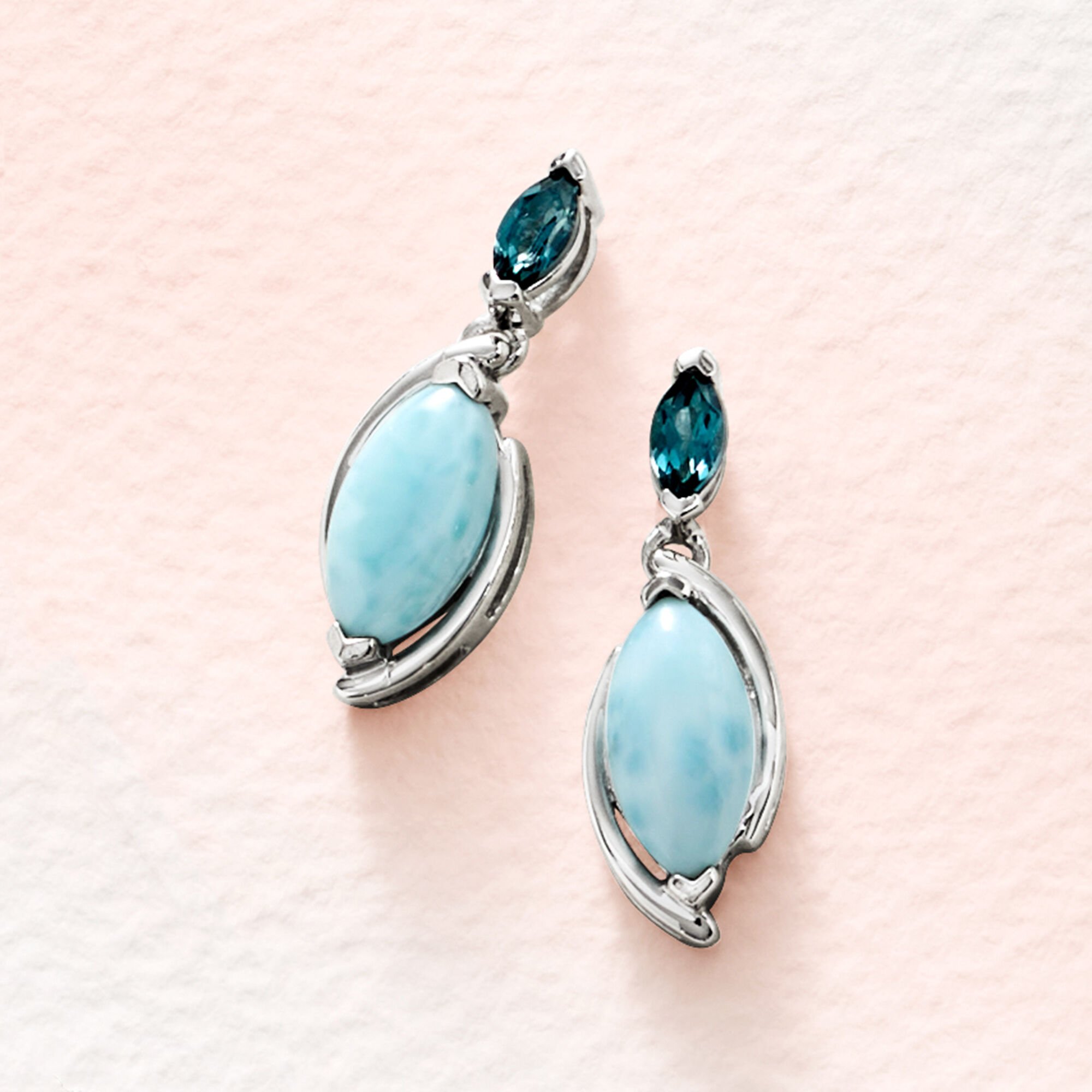 Larimar and .40 ct. t.w. London Blue Topaz Drop Earrings in Sterling Silver