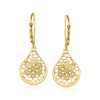 Italian 18kt Gold Over Sterling Leaf and Branch Drop Earrings