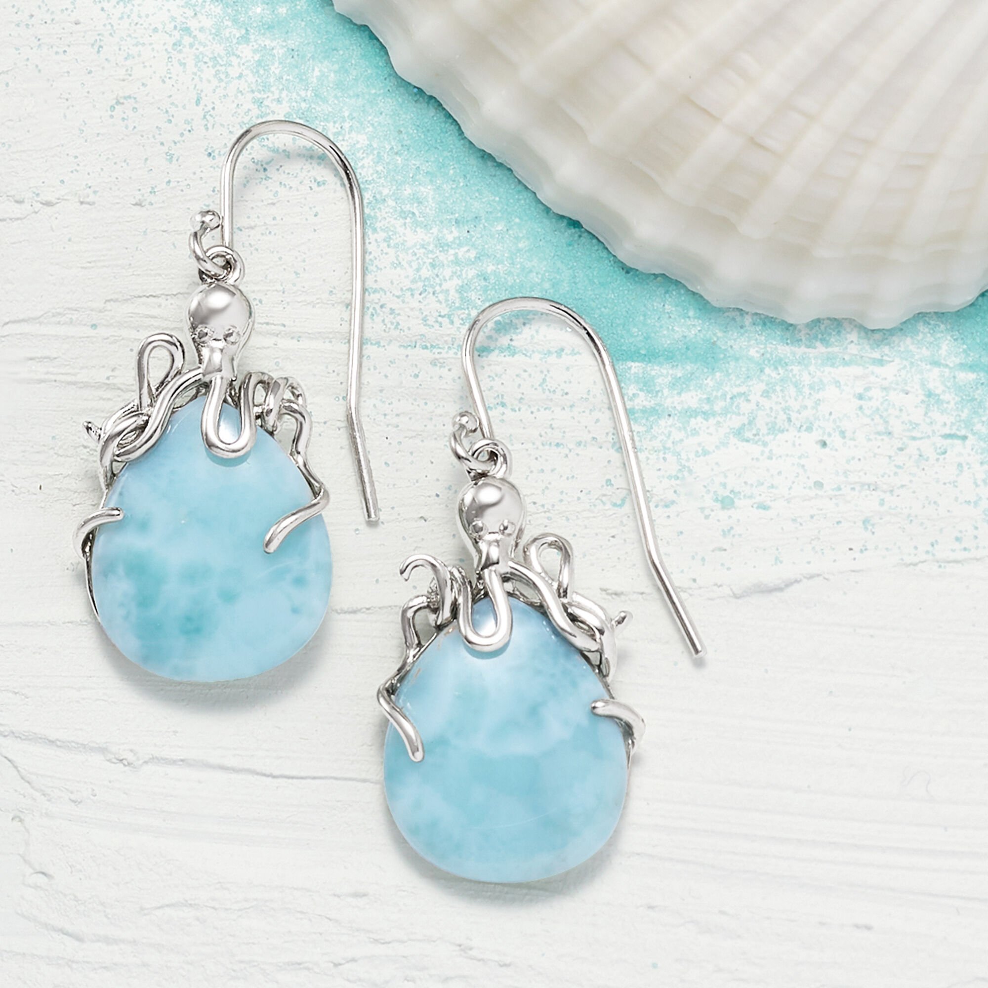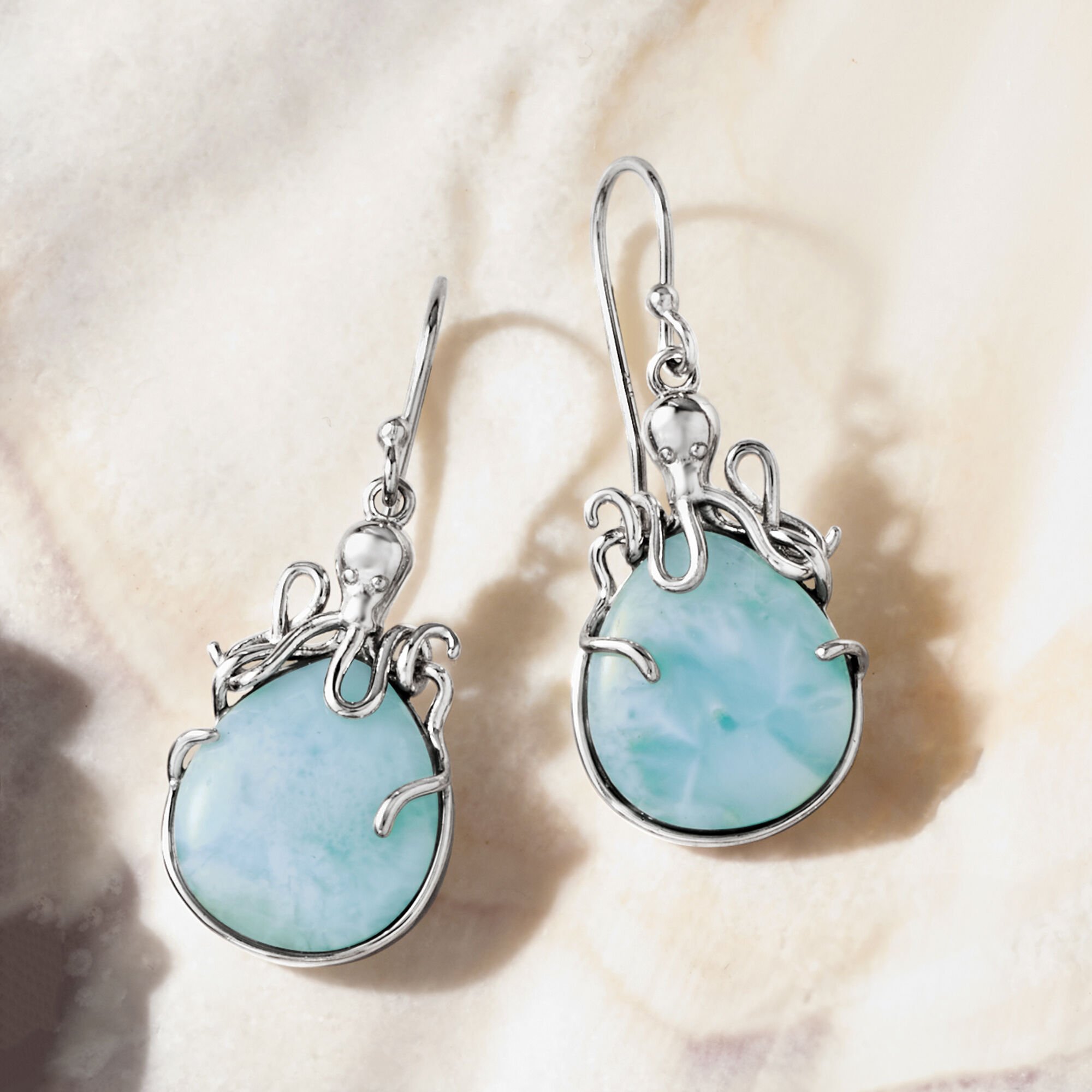 Larimar Octopus Drop Earrings in Sterling Silver