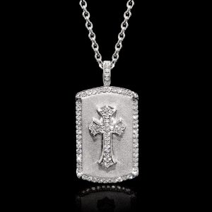 Men’s 1.00 ct. t.w. Lab-Grown Diamond Cross Dog Tag Pendant Necklace in Sterling Silver. 22″