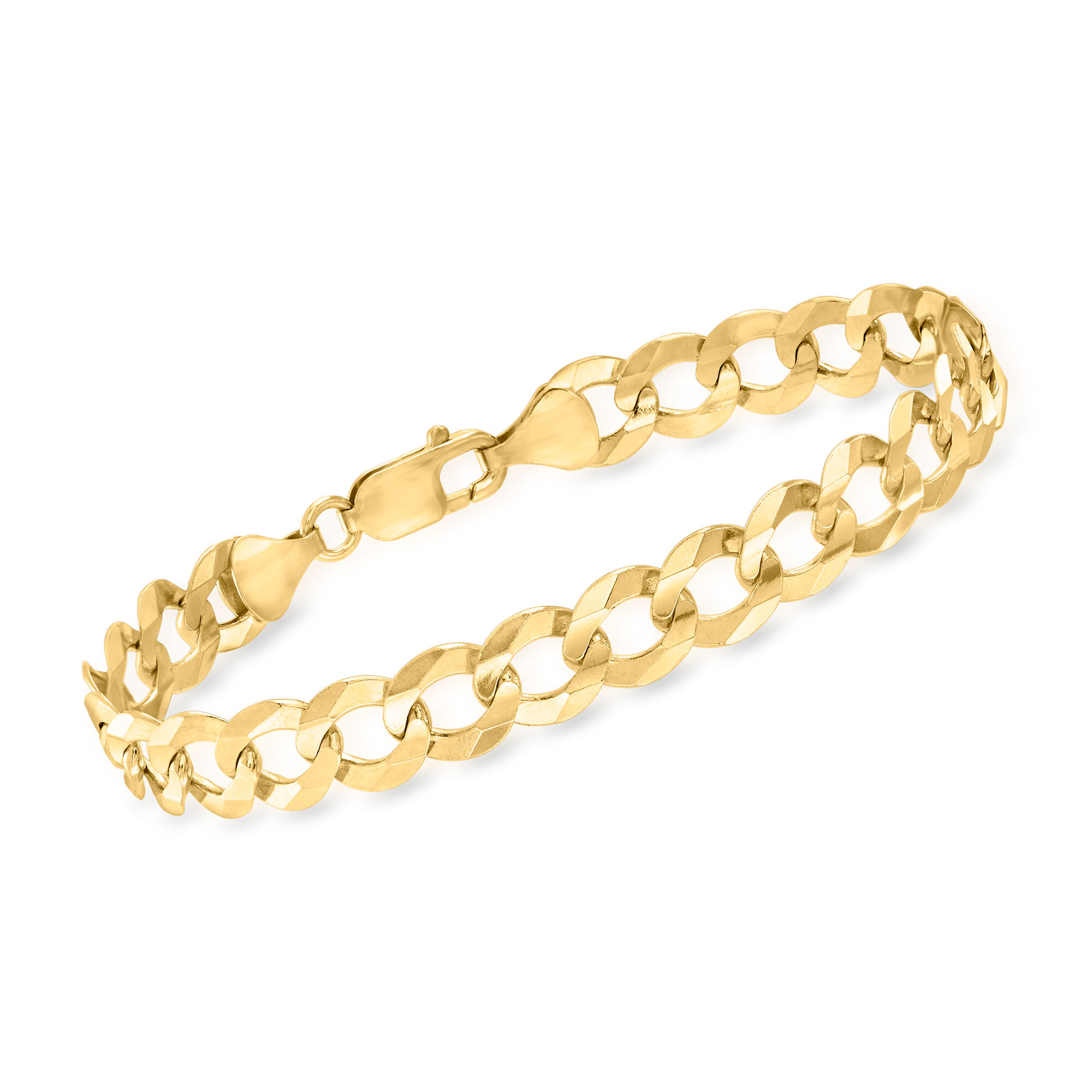 Men’s 10mm 14kt Yellow Gold Faceted Curb-Link Bracelet. 8.5″
