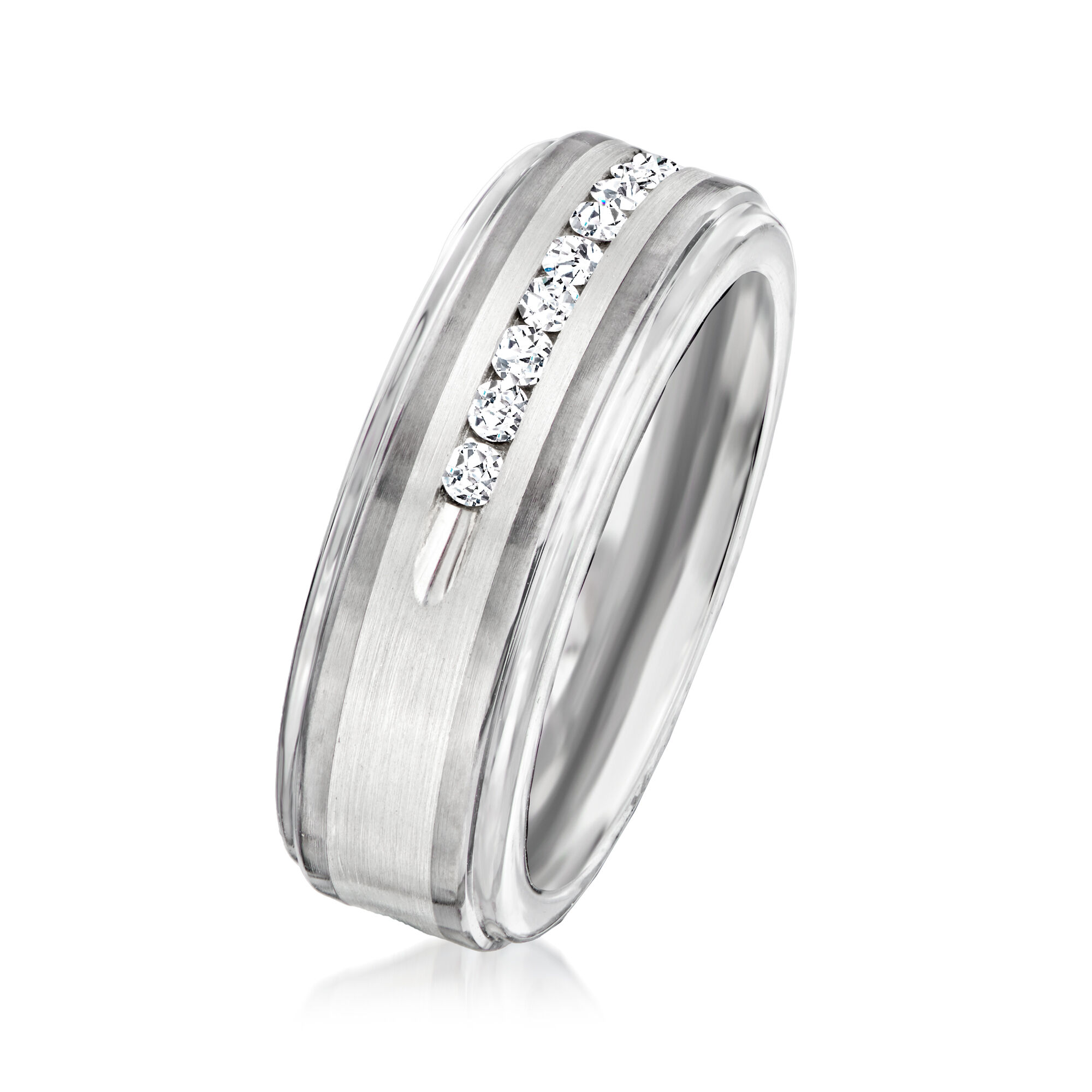 Men’s .27 ct. t.w. Diamond Wedding Band in Tungsten Carbide and Sterling Silver