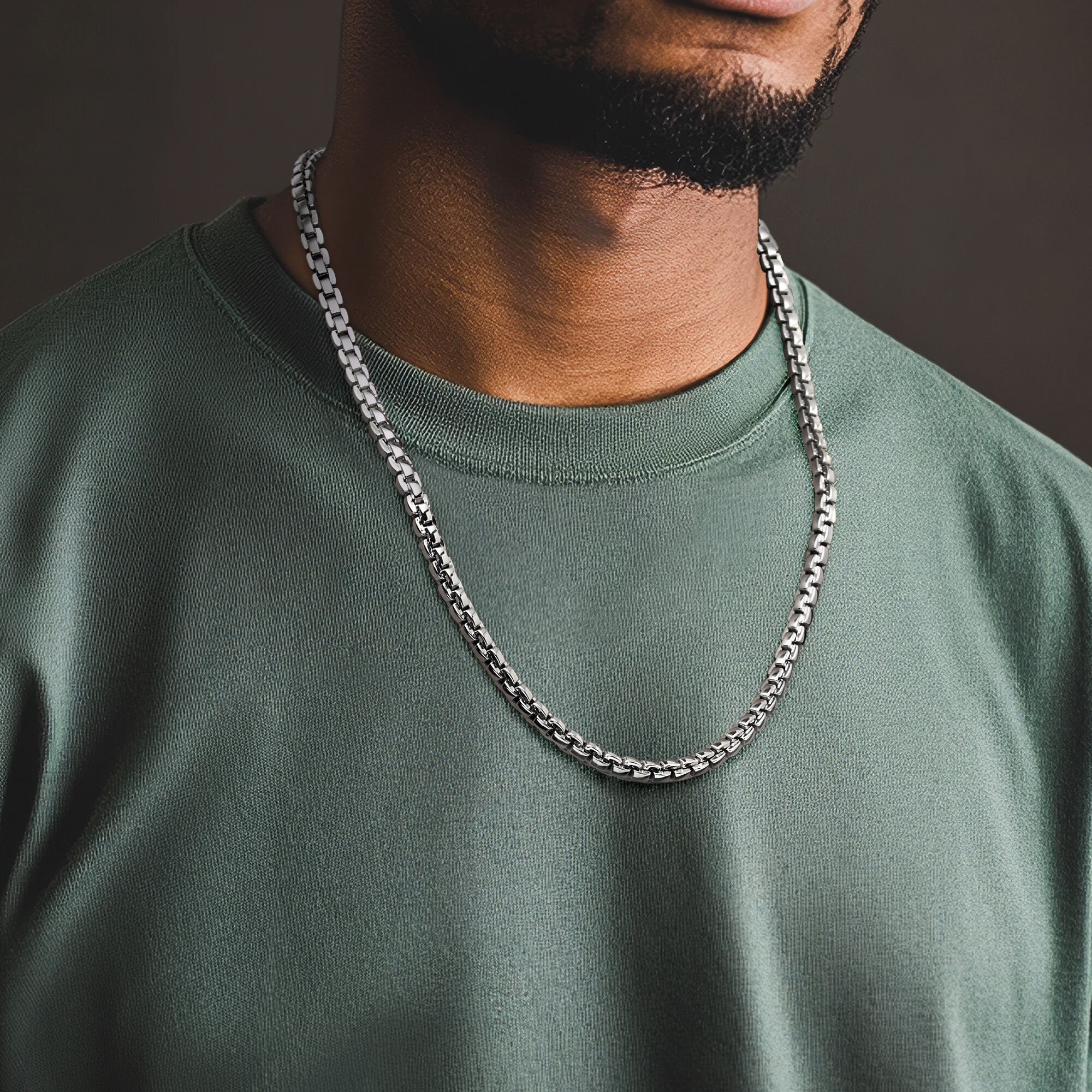 Men’s Sterling Silver Venetian Box-Chain Necklace. 22″