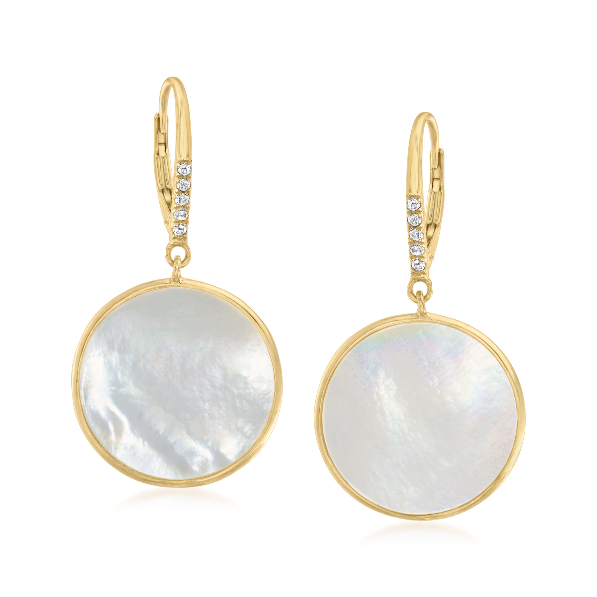 Mother-of-Pearl and .10 ct. t.w. White Topaz Circle Drop Earrings in 18kt Gold Over Sterling
