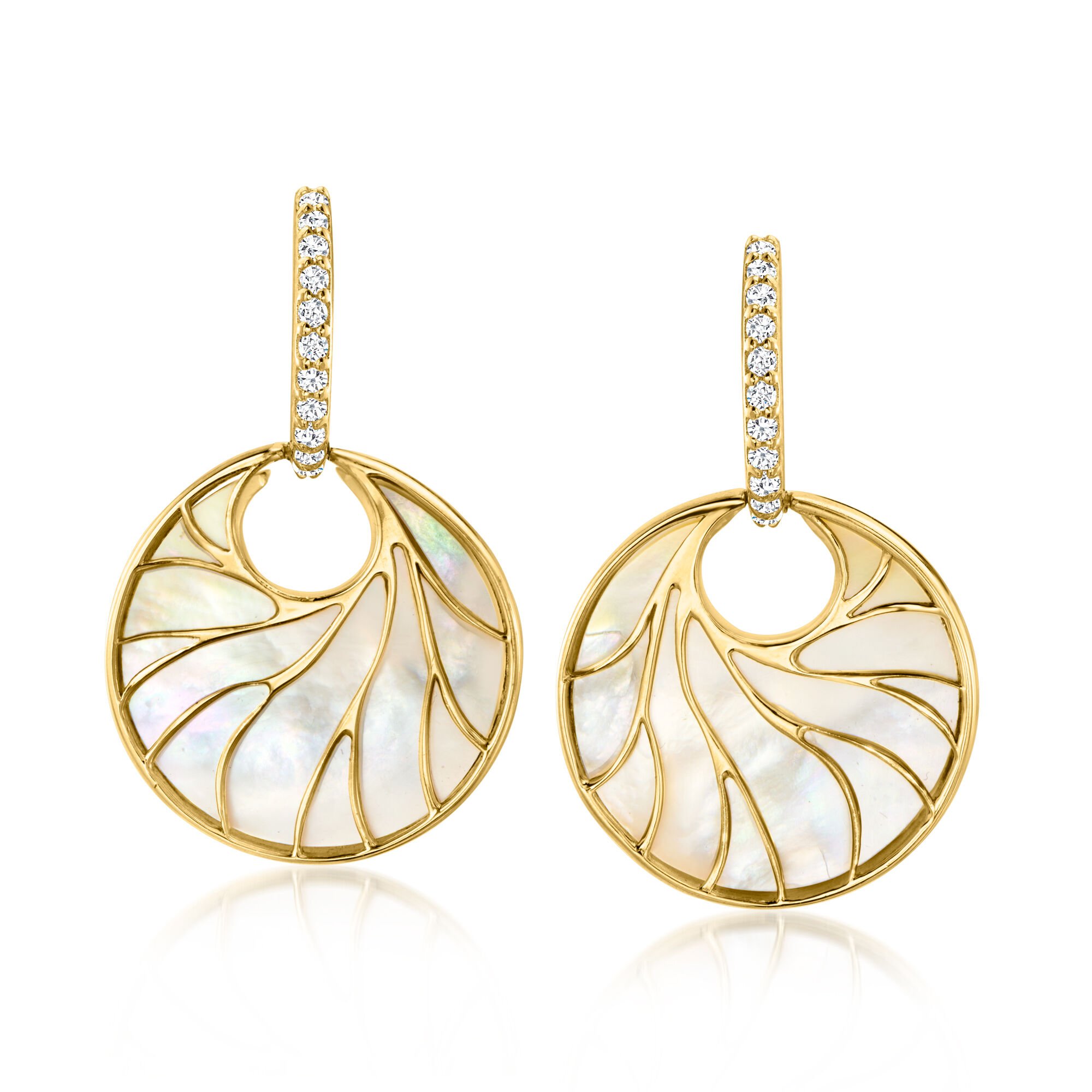 Mother-of-Pearl and .40 ct. t.w. White Topaz Circle Hoop Drop Earrings in 18kt Gold Over Sterling