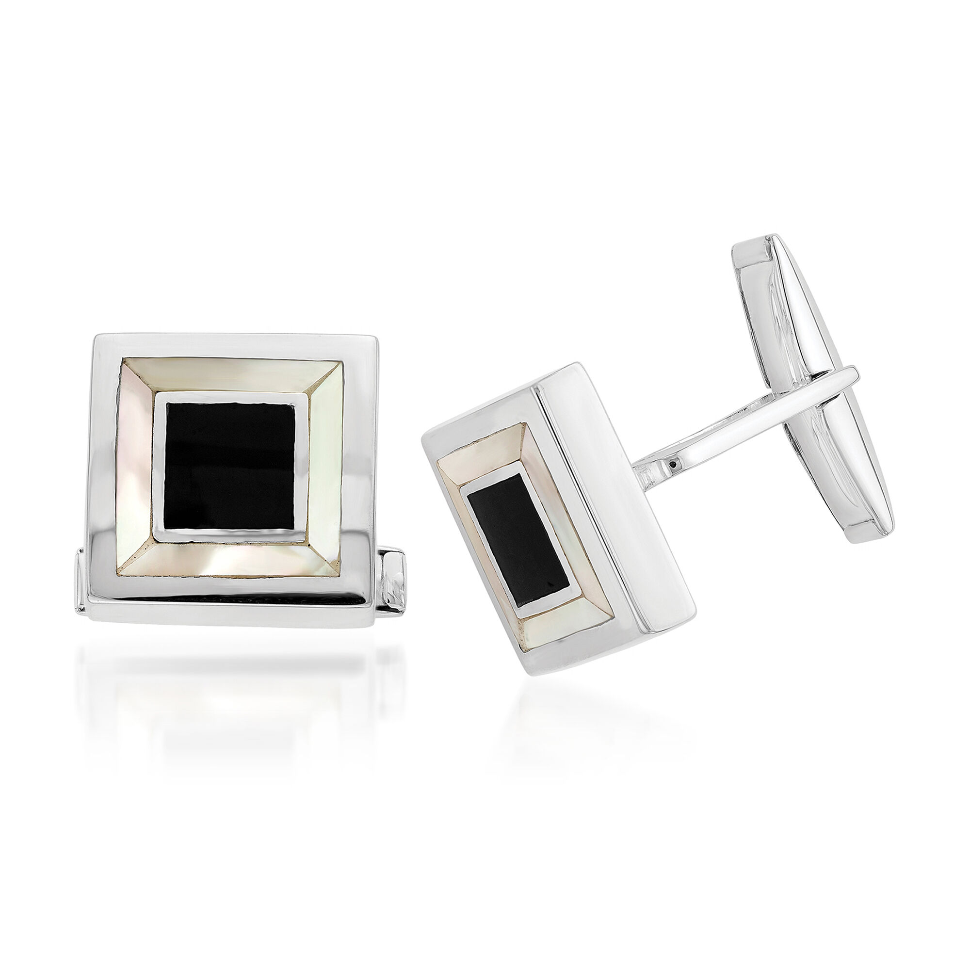 Mother-of-Pearl and Black Enamel Cuff Links in Sterling Silver