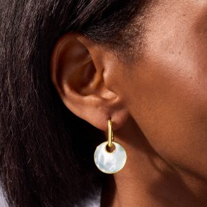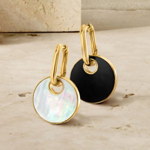 Mother-of-Pearl and Onyx Reversible Hoop Drop Earrings in 18kt Gold Over Sterling. 1 1/4″
