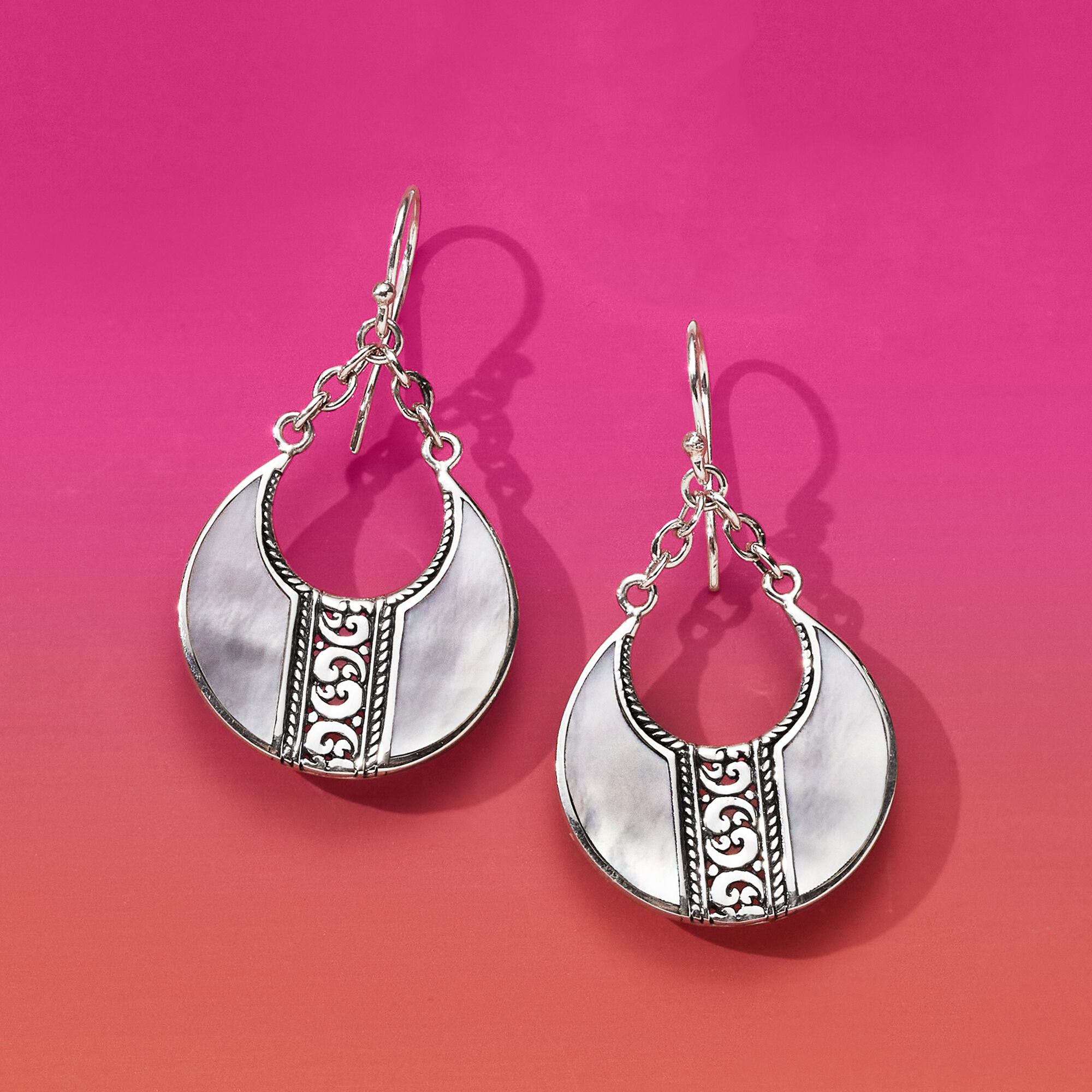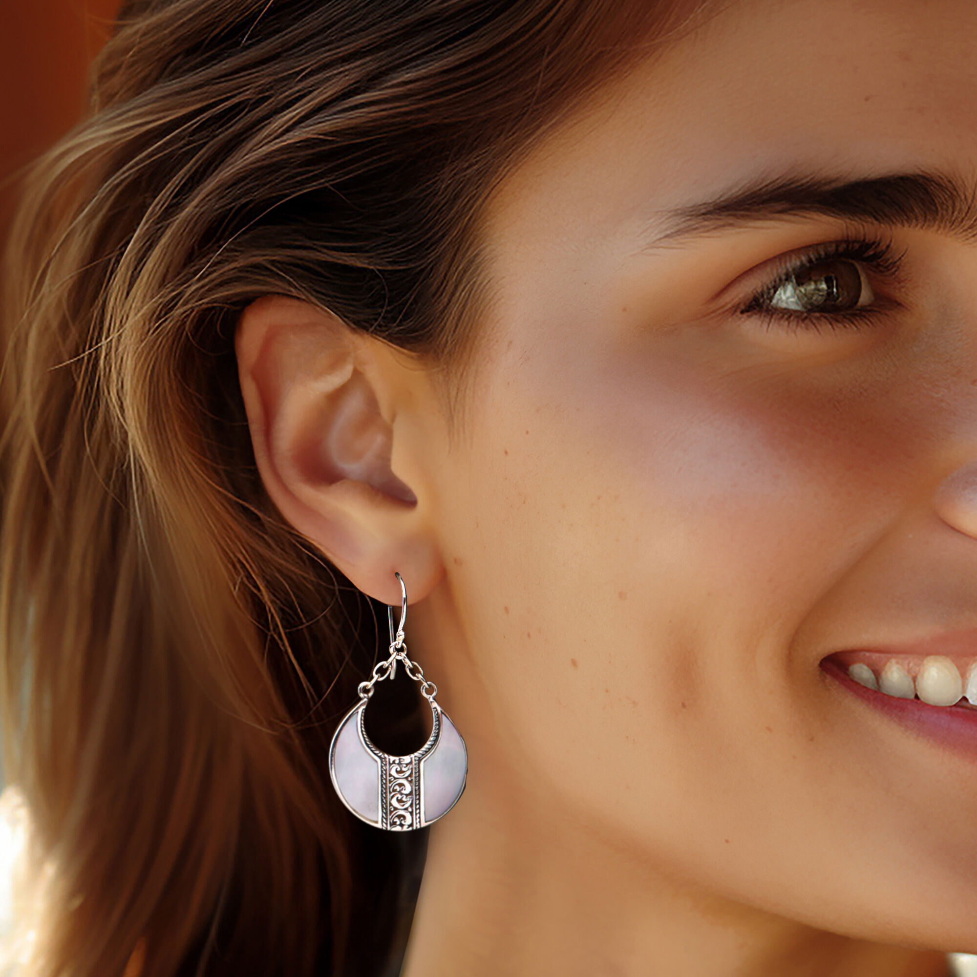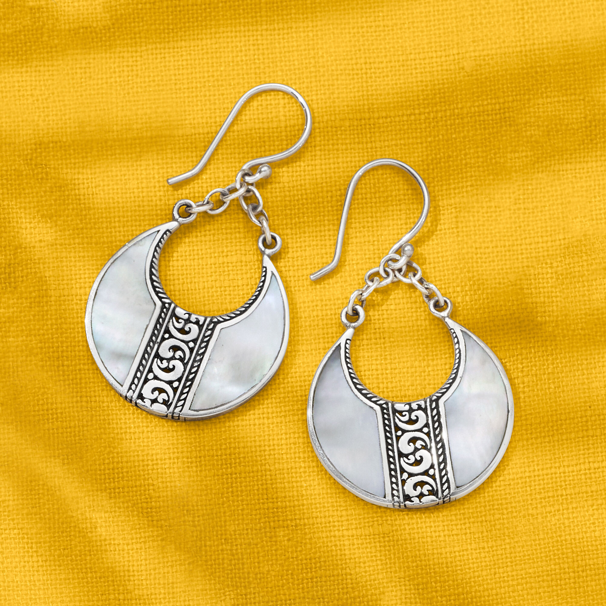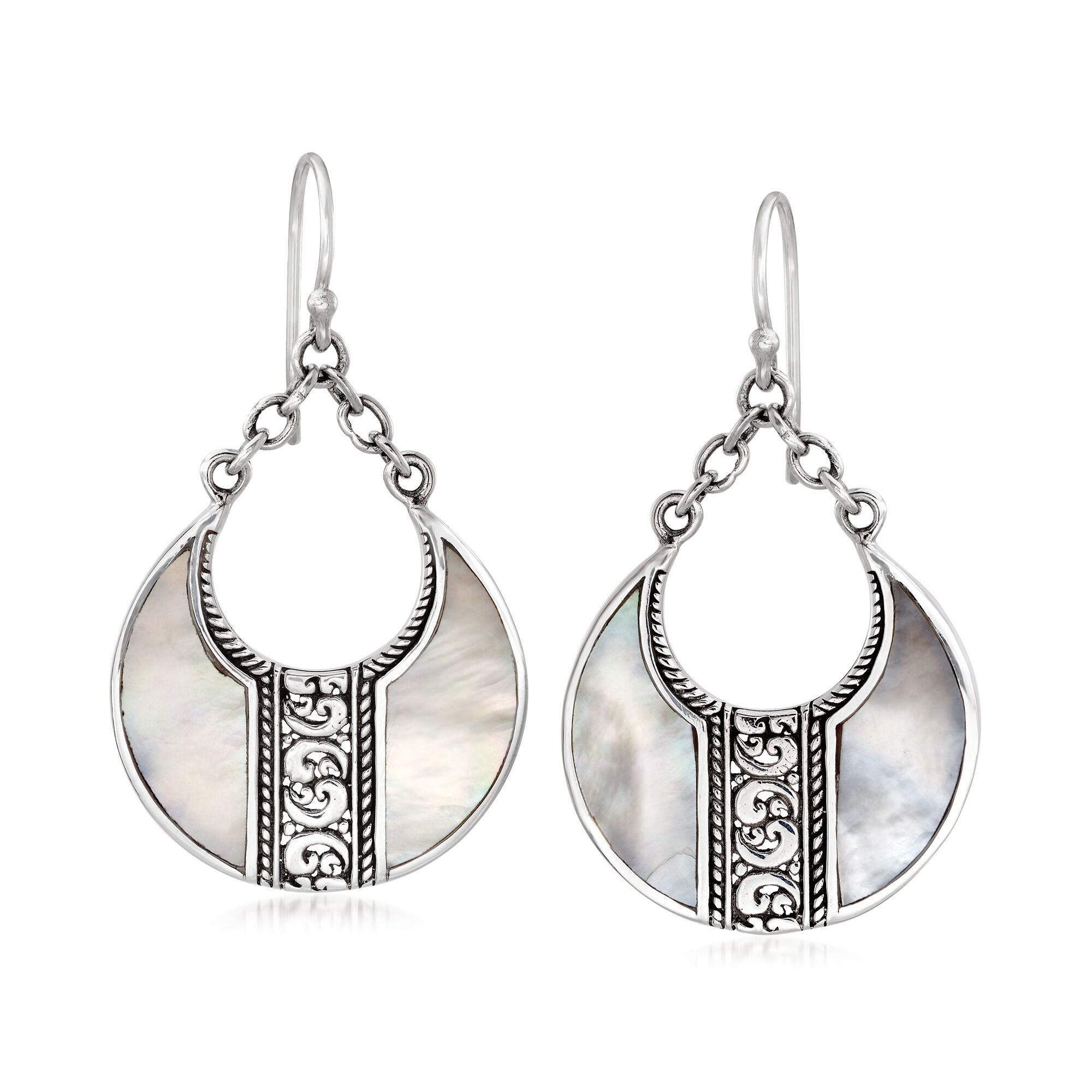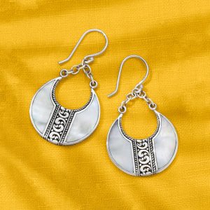 Mother-of-Pearl Bali-Style Teardrop Earrings in Sterling Silver