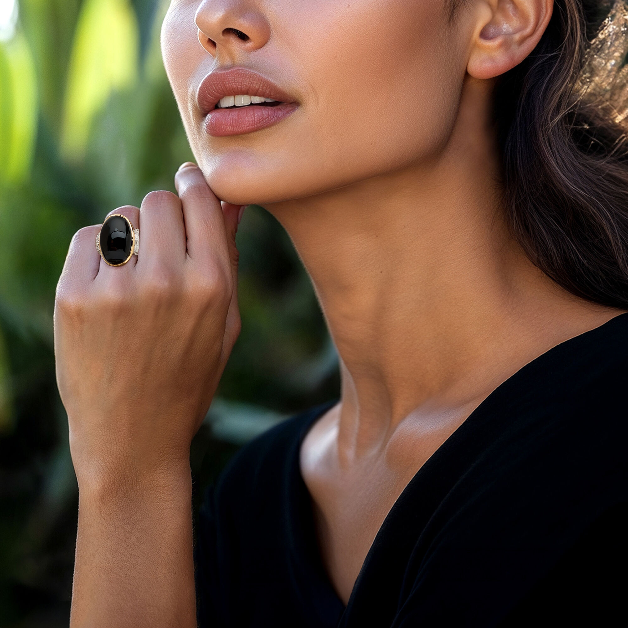 Onyx ( Color: Black, Quantity: 1, Shape & Cutting Style: Oval Cabochon, Size: 20×13 mm) |