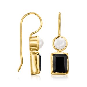 Onyx and 4.5-5mm Cultured Pearl Drop Earrings in 18kt Gold Over Sterling