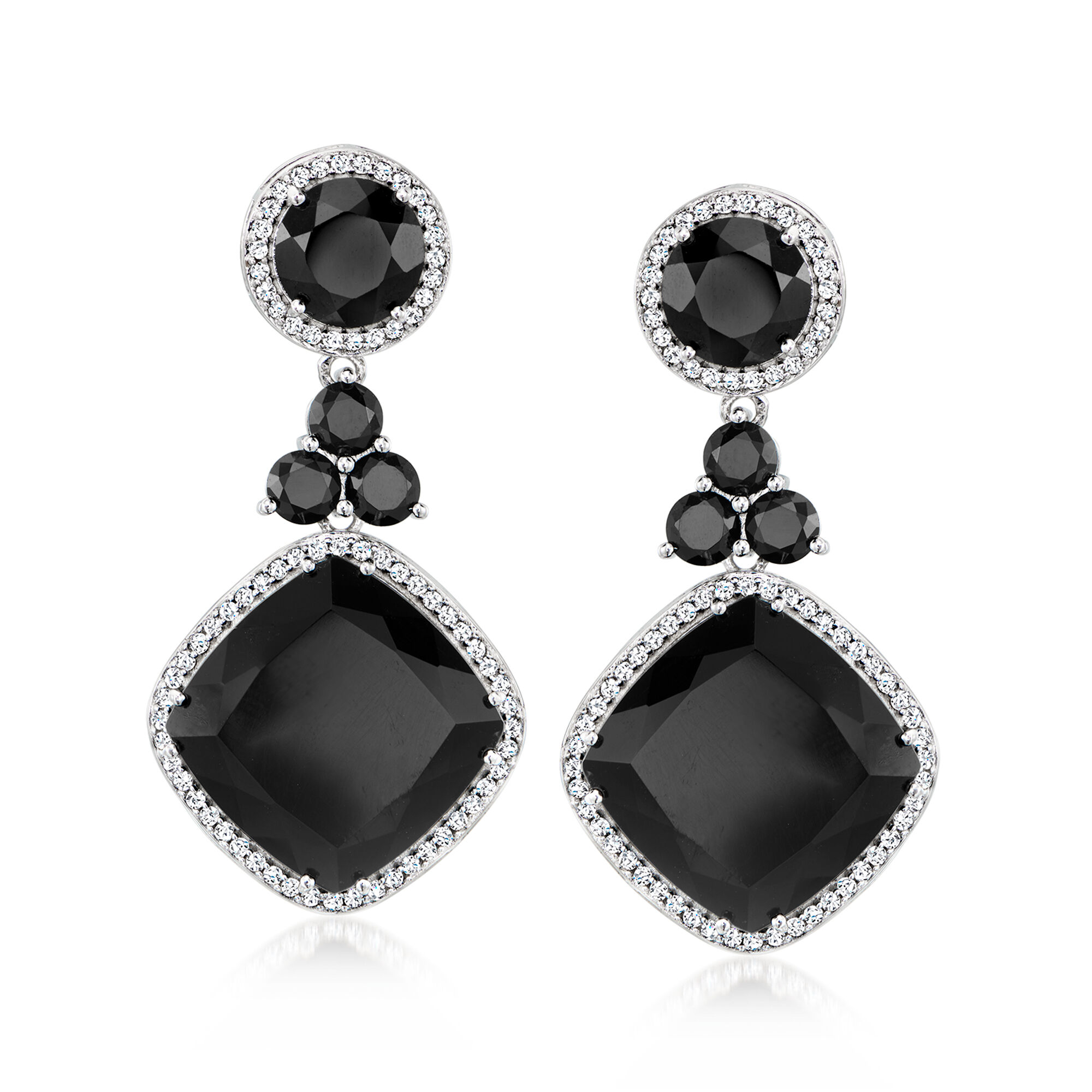 Onyx and .70 ct. t.w. White Topaz Drop Earrings in Sterling Silver