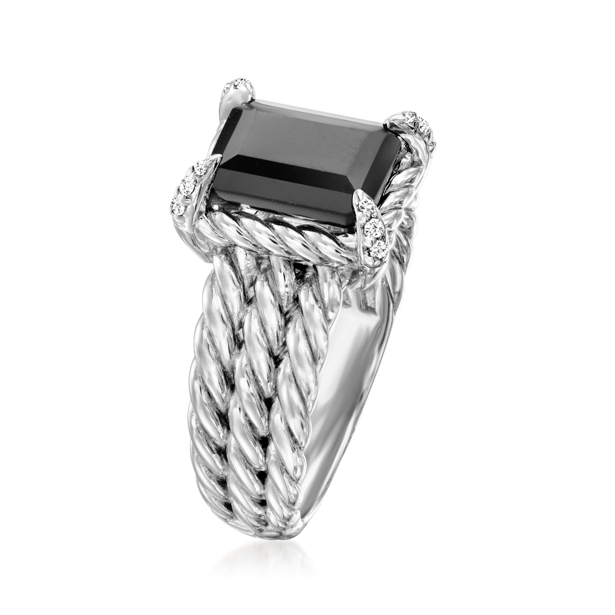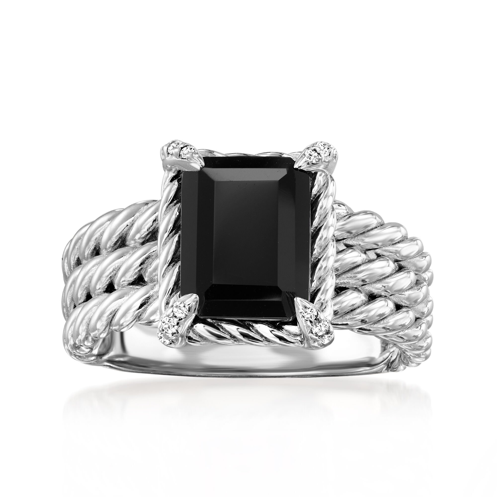 Onyx Three-Row Ring with White Topaz in Sterling Silver