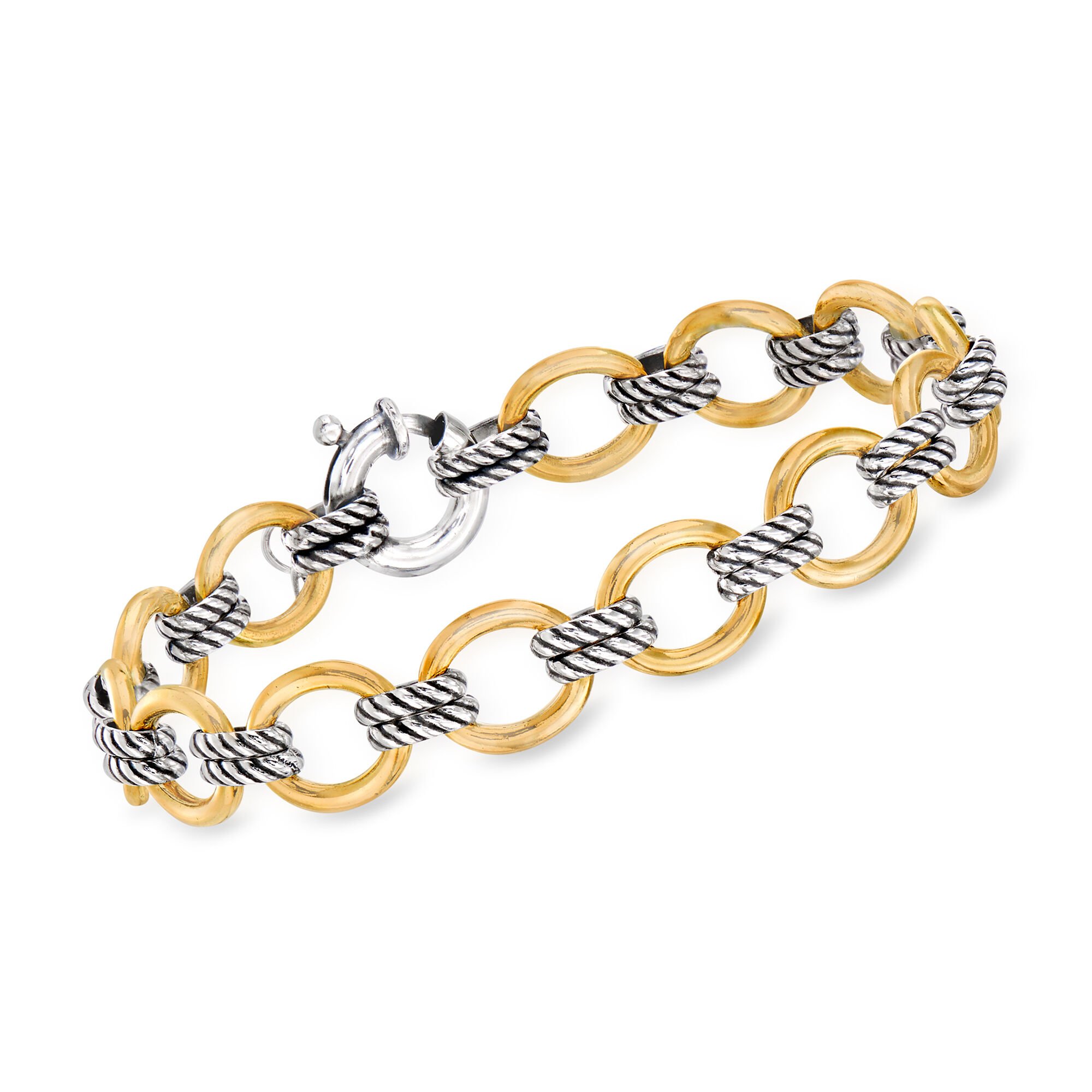 Phillip Gavriel “Italian Cable” 18kt Yellow Gold and Sterling Silver Cable-Link Bracelet. 7.5″