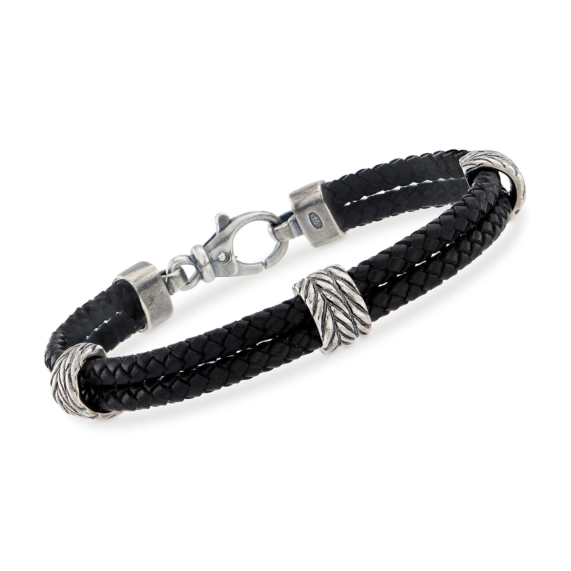 Phillip Gavriel Men’s Black Leather Station Bracelet with Sterling Silver. 8.25″