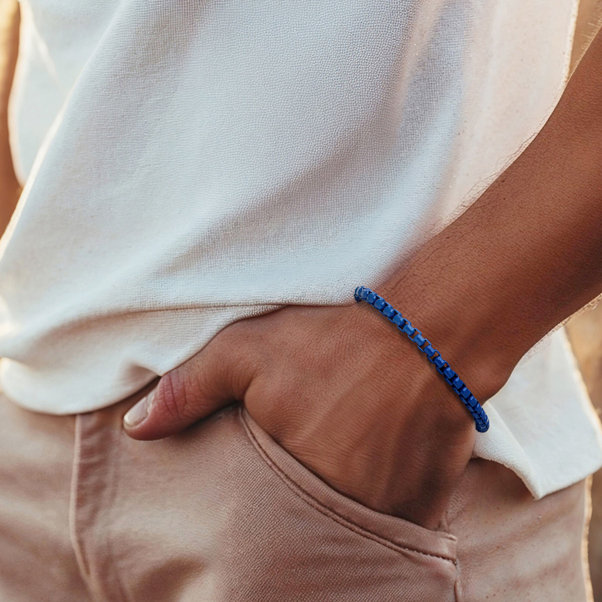 Phillip Gavriel Men’s Blue Enamel and Sterling Silver Box-Chain Bracelet. 8.75″