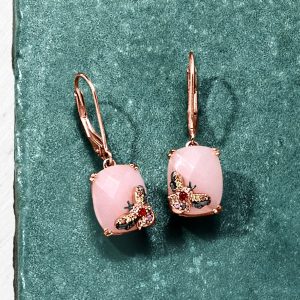Pink Opal and .14 ct. t.w. Multicolored Sapphire Bumblebee Drop Earrings with Garnets in 18kt Rose Gold Over Sterling