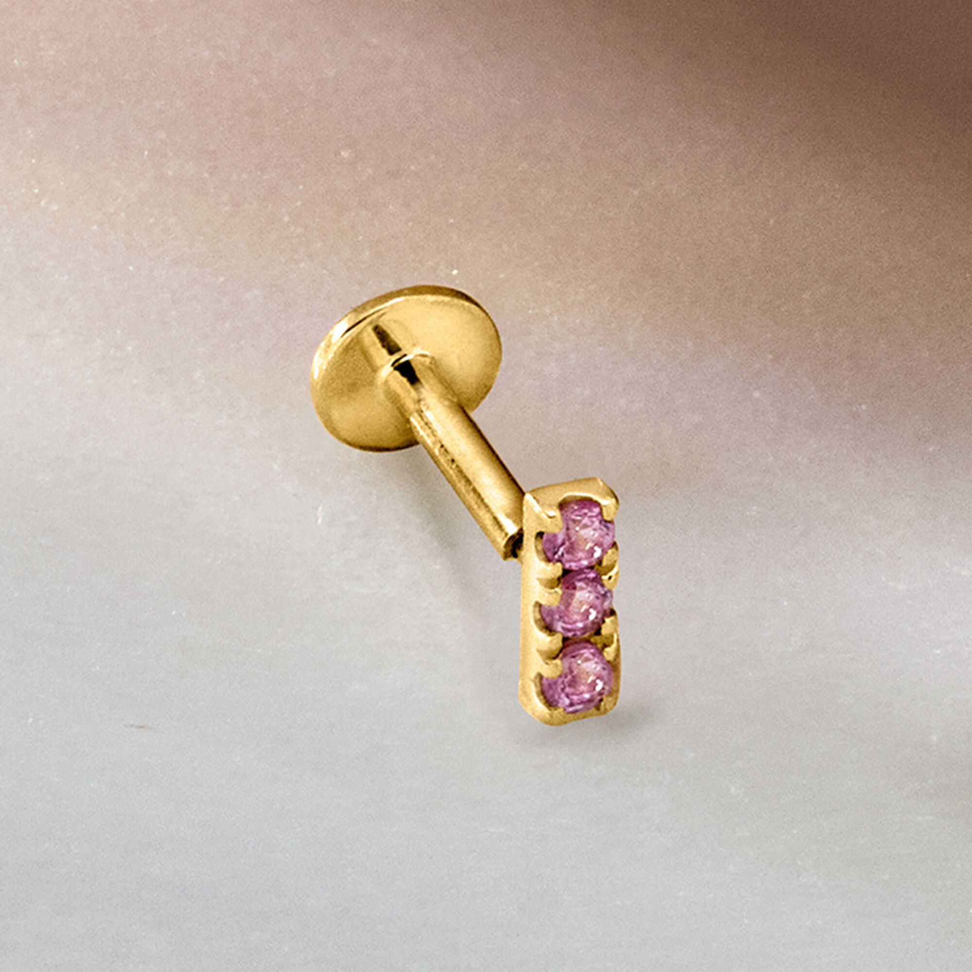Pink Sapphire Bar Flat-Back Stud Earrings in 14kt Yellow Gold
