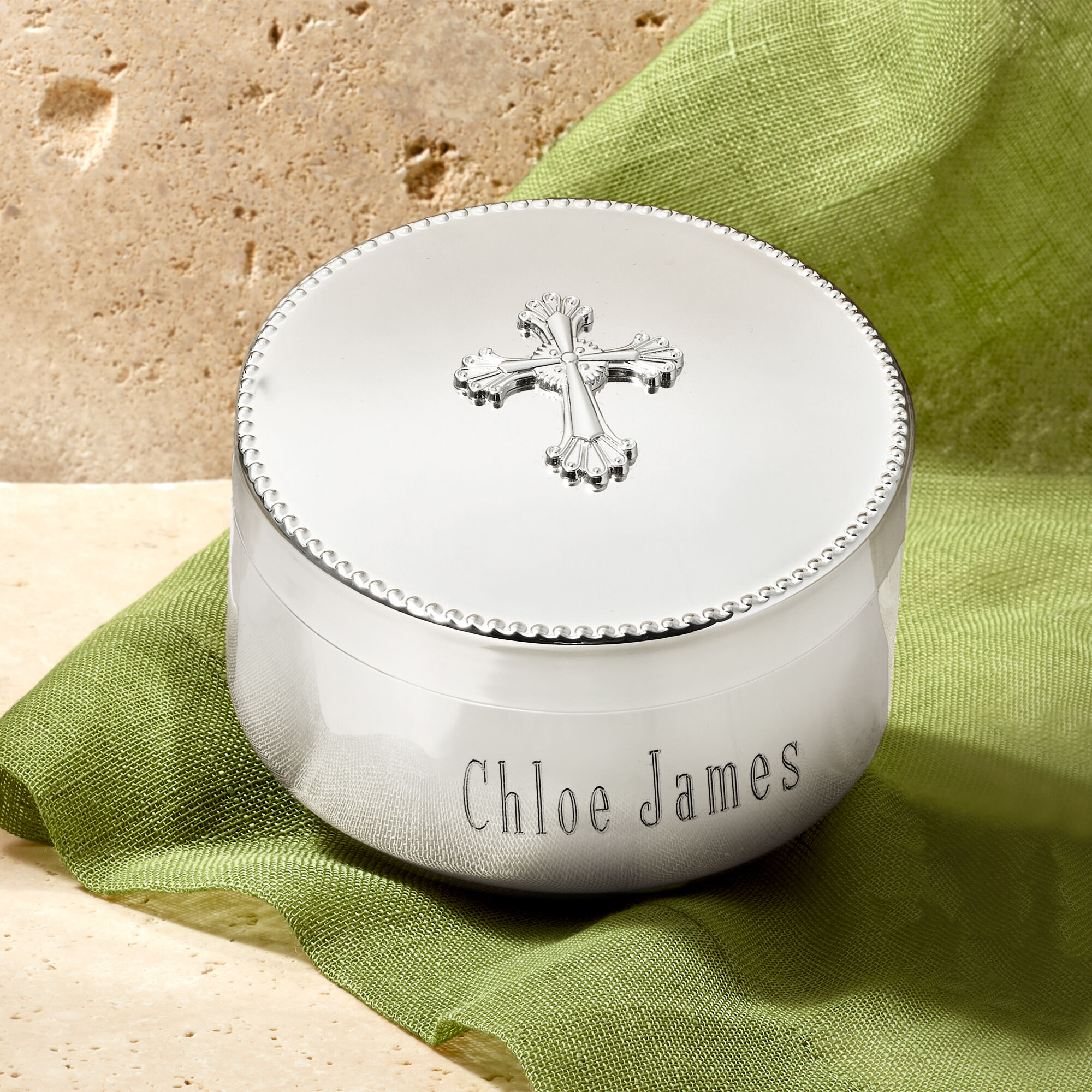 Reed & Barton “Abbey Cross” Silver Plate Personalized Rosary Box