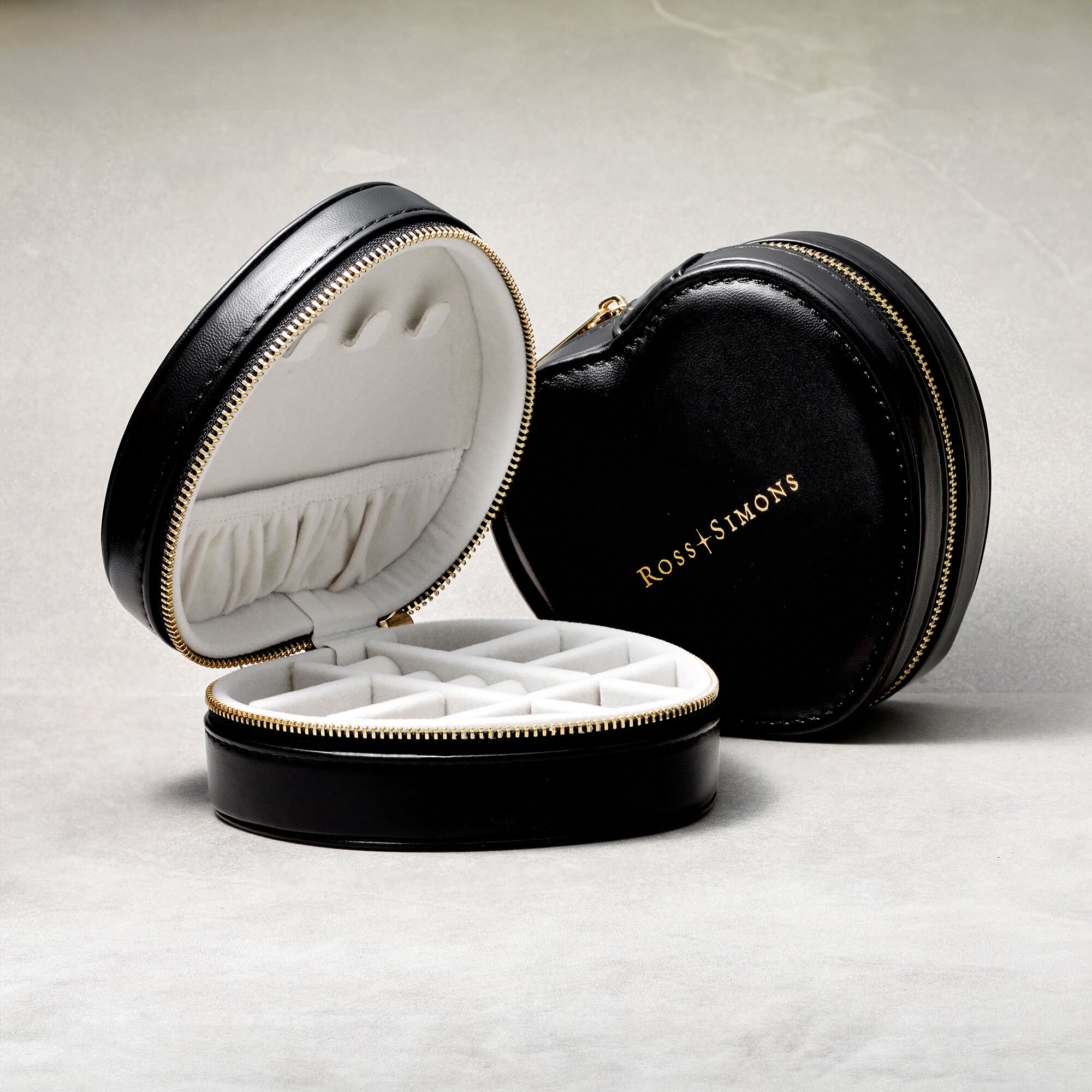 Ross-Simons Black Faux Leather Heart-Shaped Jewelry Travel Case