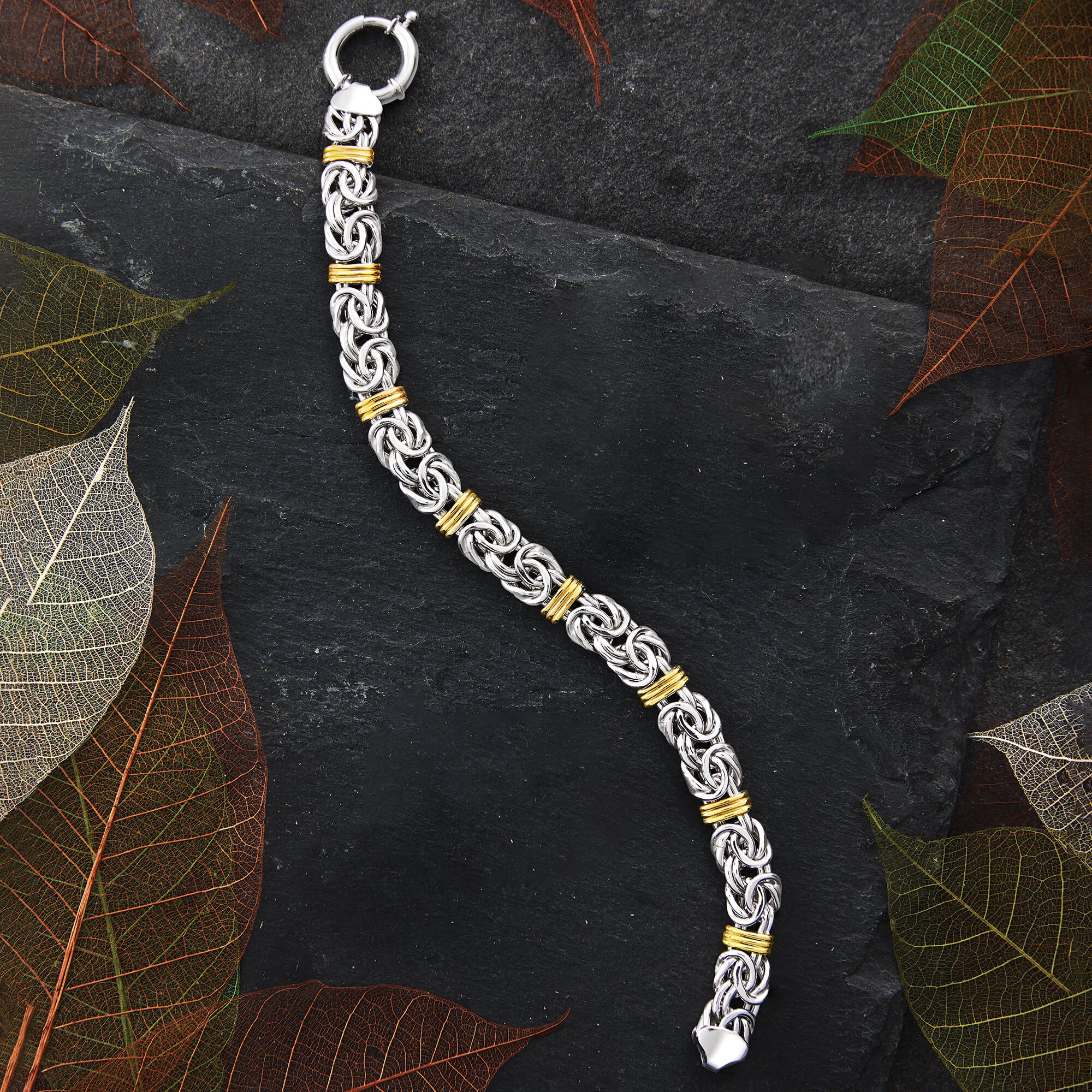 Sterling Silver Byzantine Beaded-Edge Bracelet with 18kt Gold Over Sterling