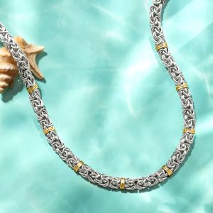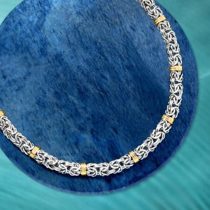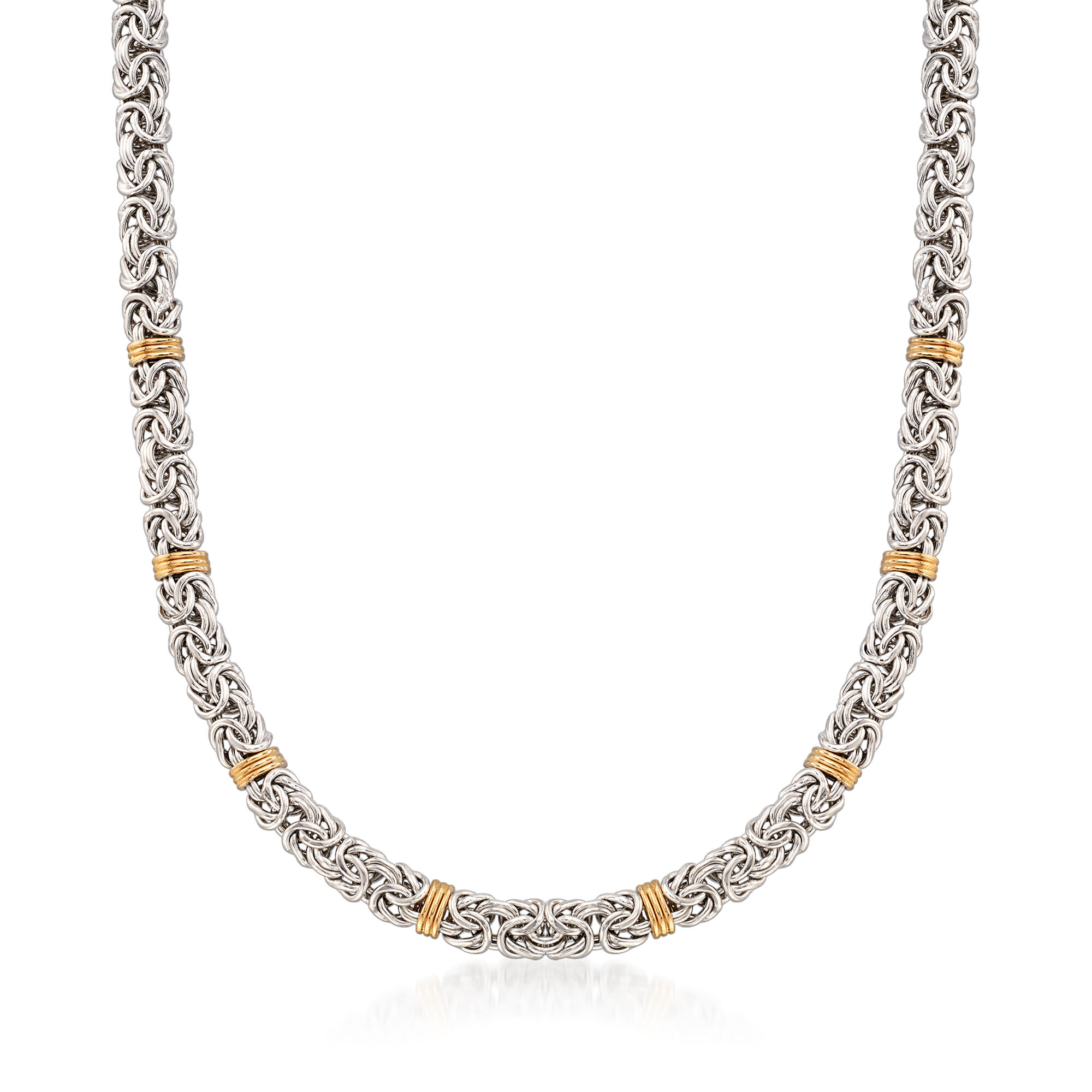 Sterling Silver and 14kt Yellow Gold Byzantine Station Necklace