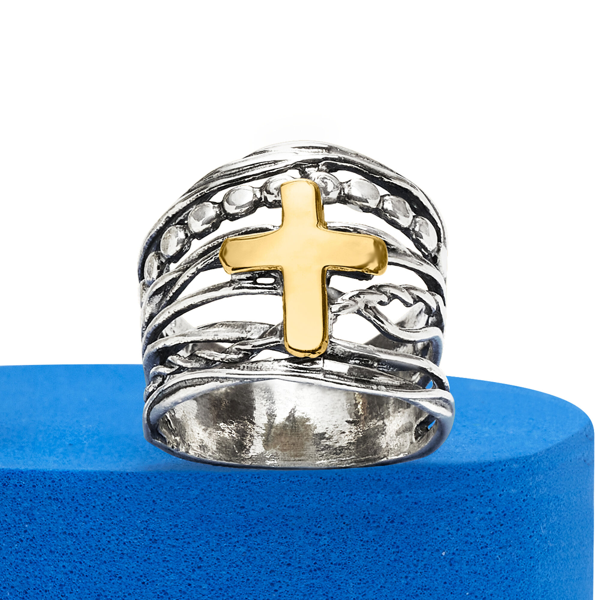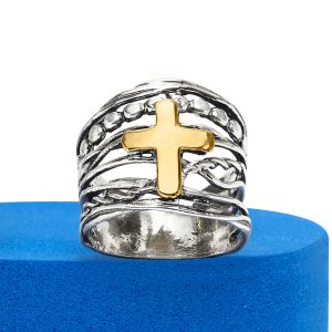 Sterling Silver and 14kt Yellow Gold Multi-Row Cross Ring