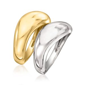 Sterling Silver and 18kt Gold Over Sterling Jewelry Set: Two Sculptural Rings