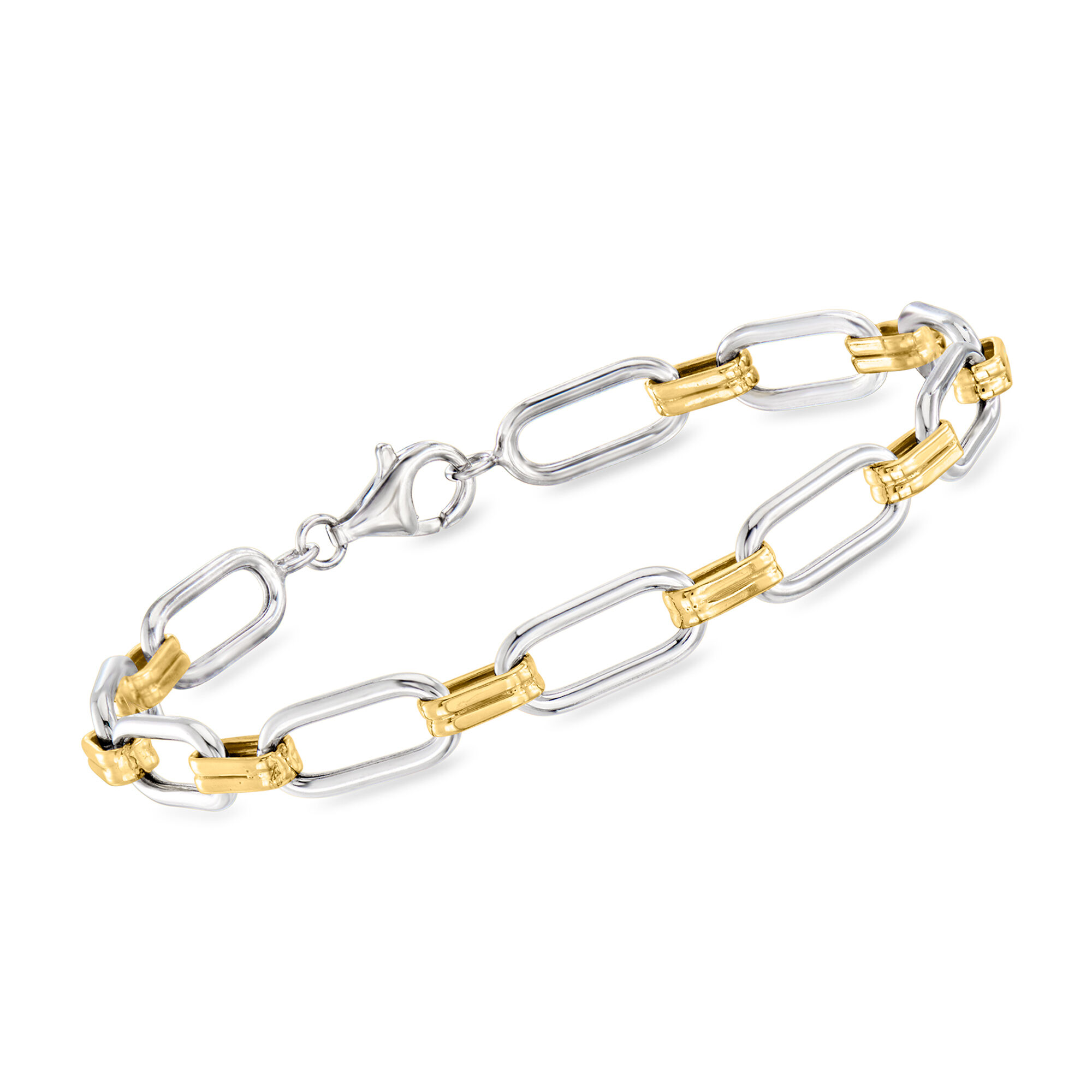 Sterling Silver and 18kt Gold Over Sterling Paper Clip Link Bracelet