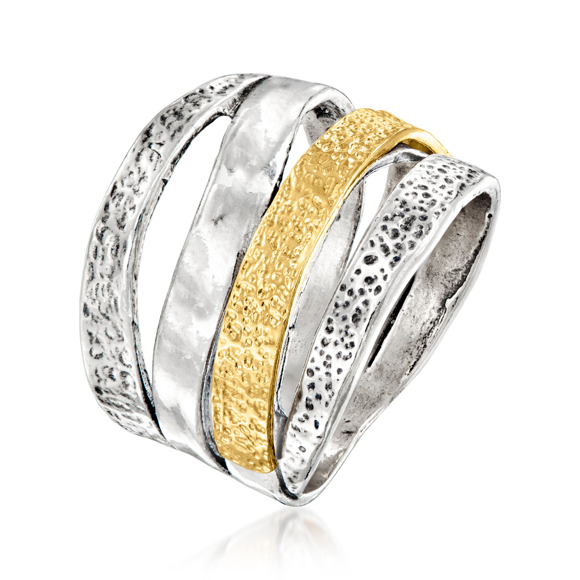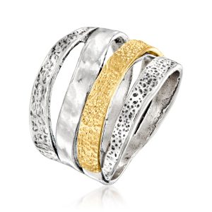 Sterling Silver and 18kt Gold Over Sterling Textured and Polished Multi-Row Ring