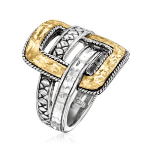 Sterling Silver and 18kt Yellow Gold Bali-Style Overlapping Buckle Ring