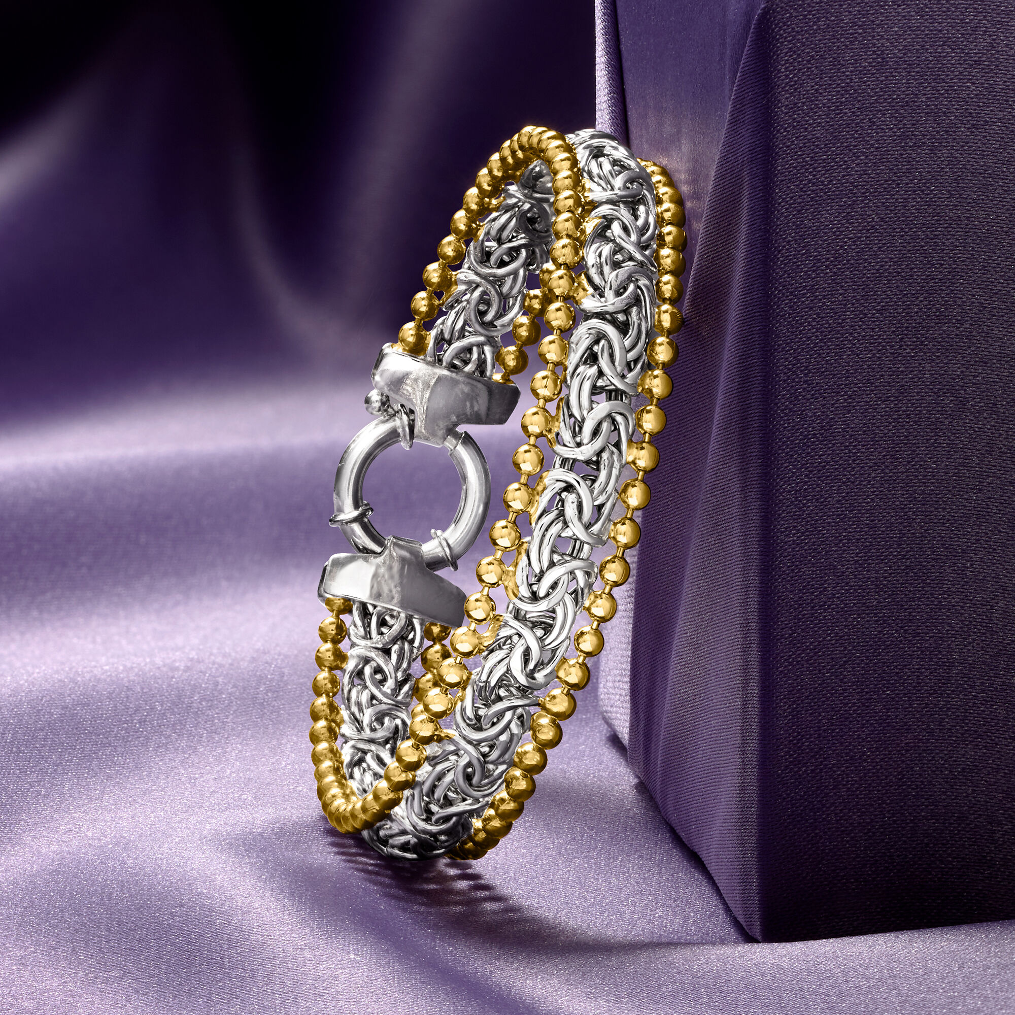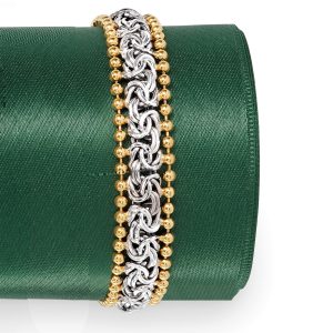 Sterling Silver Byzantine Beaded-Edge Bracelet with 18kt Gold Over Sterling