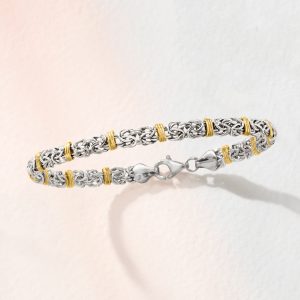 Sterling Silver Byzantine Bracelet with 14kt Gold Stations