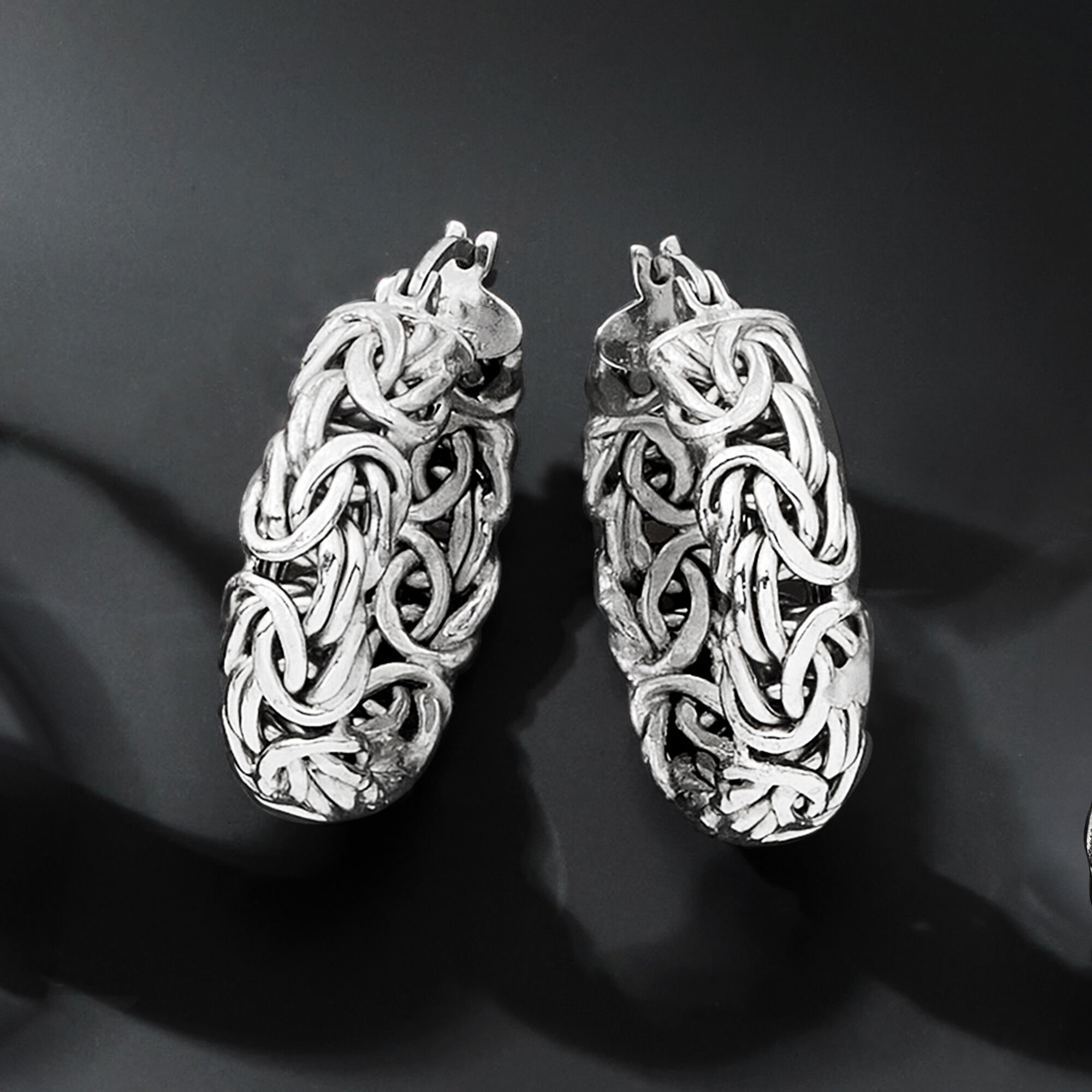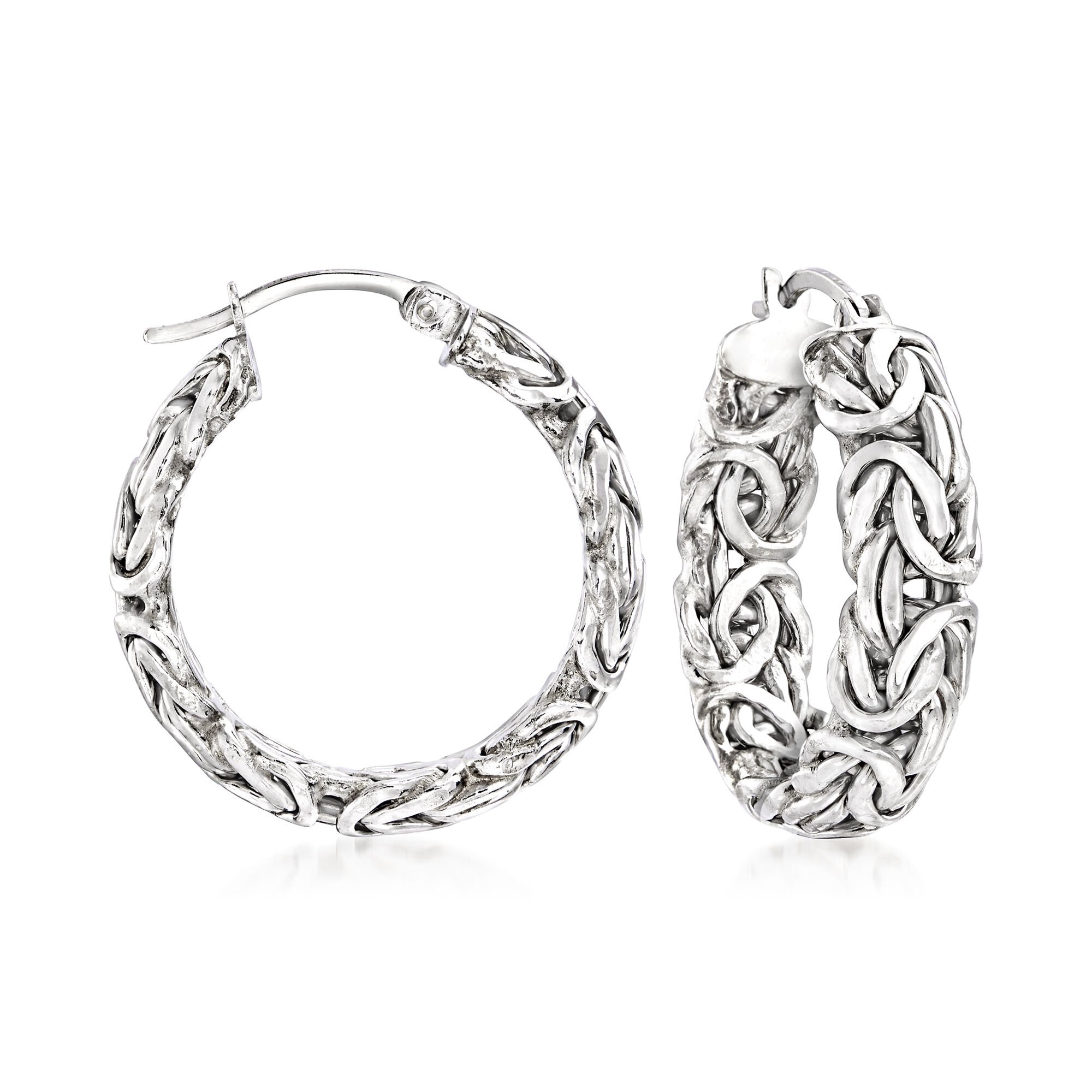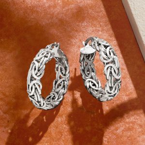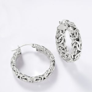 Sterling Silver Byzantine Hoop Earrings. 1″