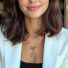 Sterling Silver Floral Moon Pendant Necklace with 14kt Yellow Gold. 18″