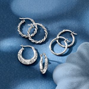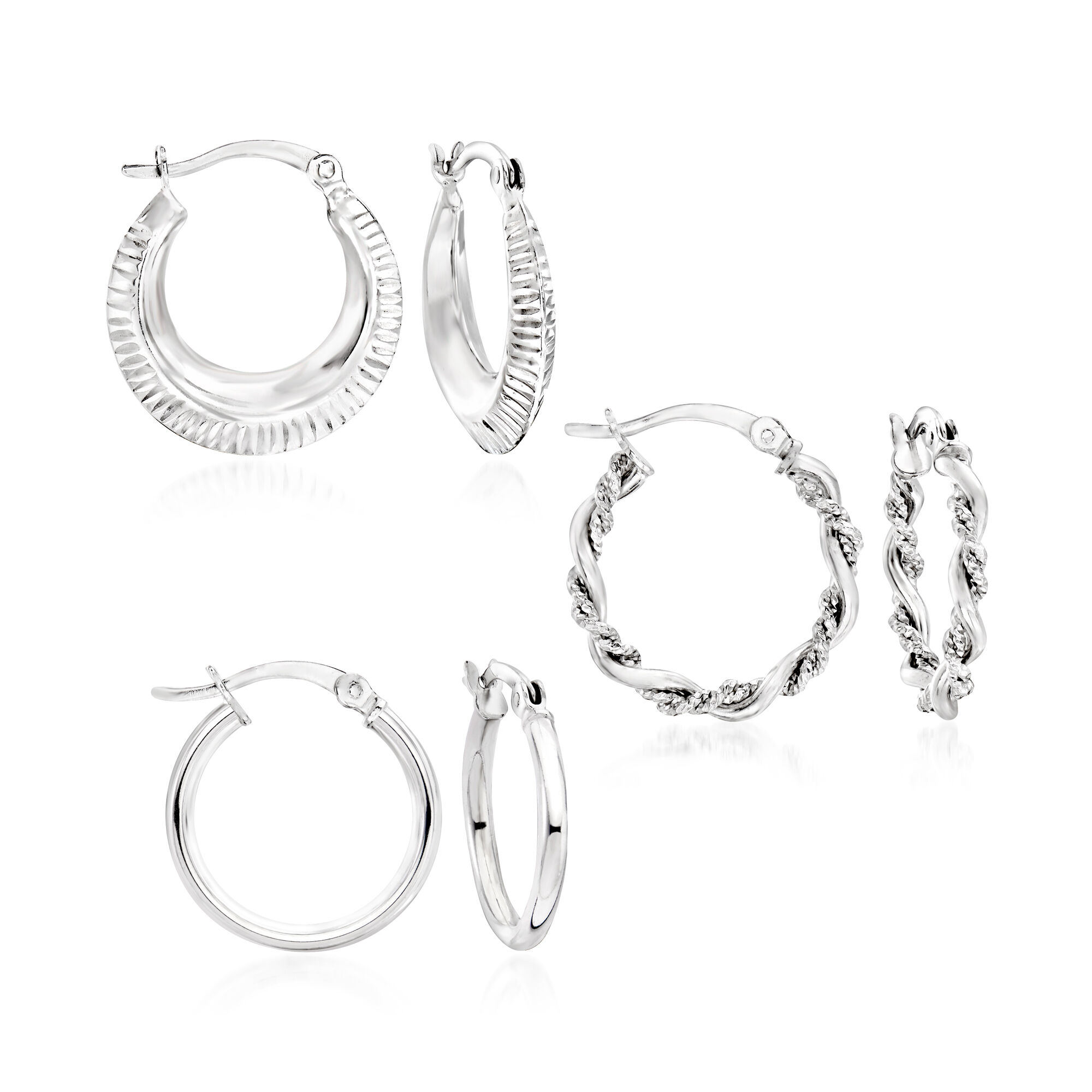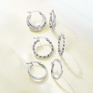 Sterling Silver Jewelry Set: Three Pairs of Hoop Earrings. 3/4″