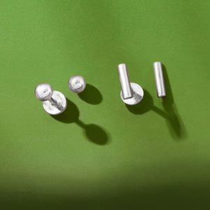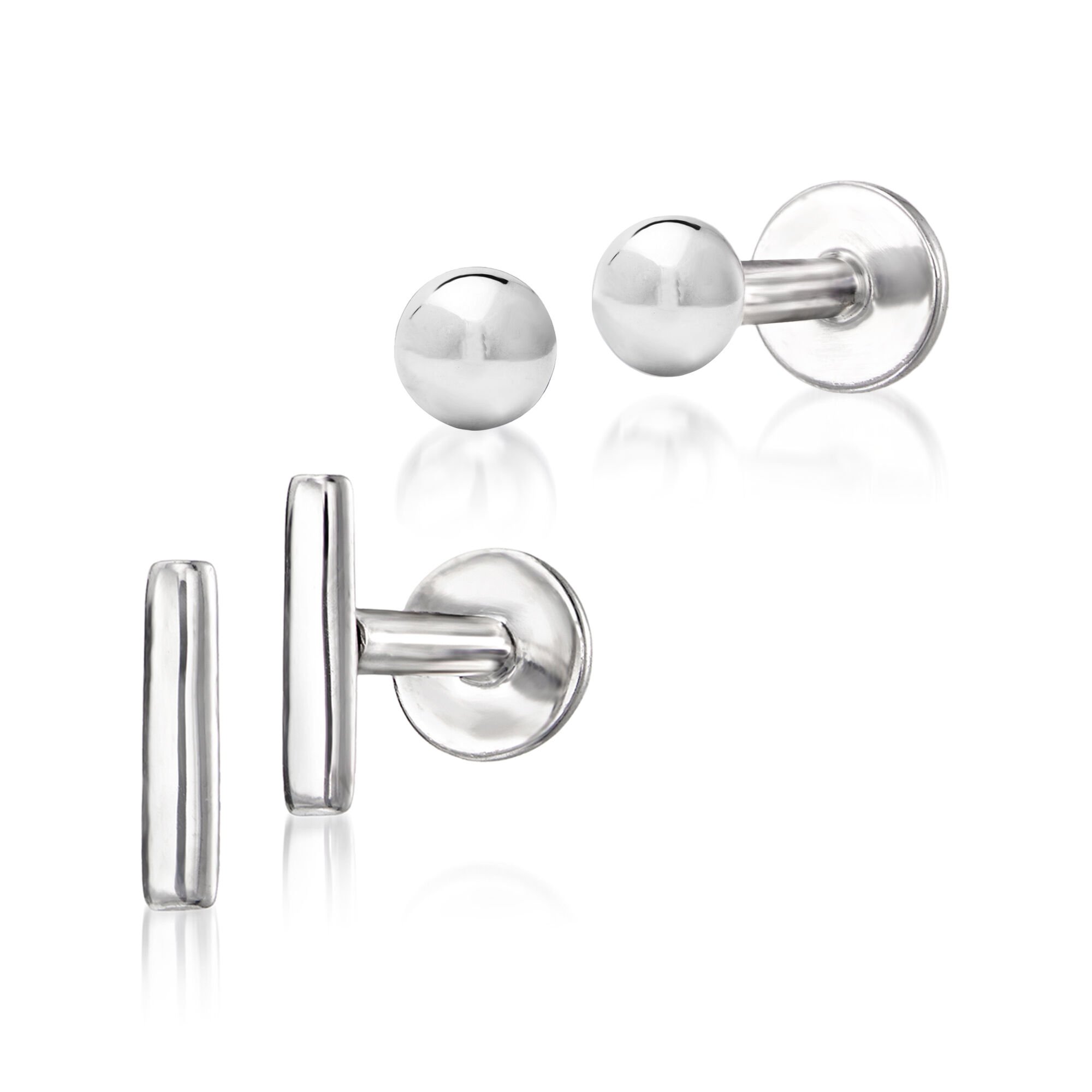 Sterling Silver Jewelry Set: Two Pairs of Ball and Bar Flat-Back Stud Earrings