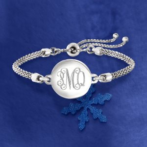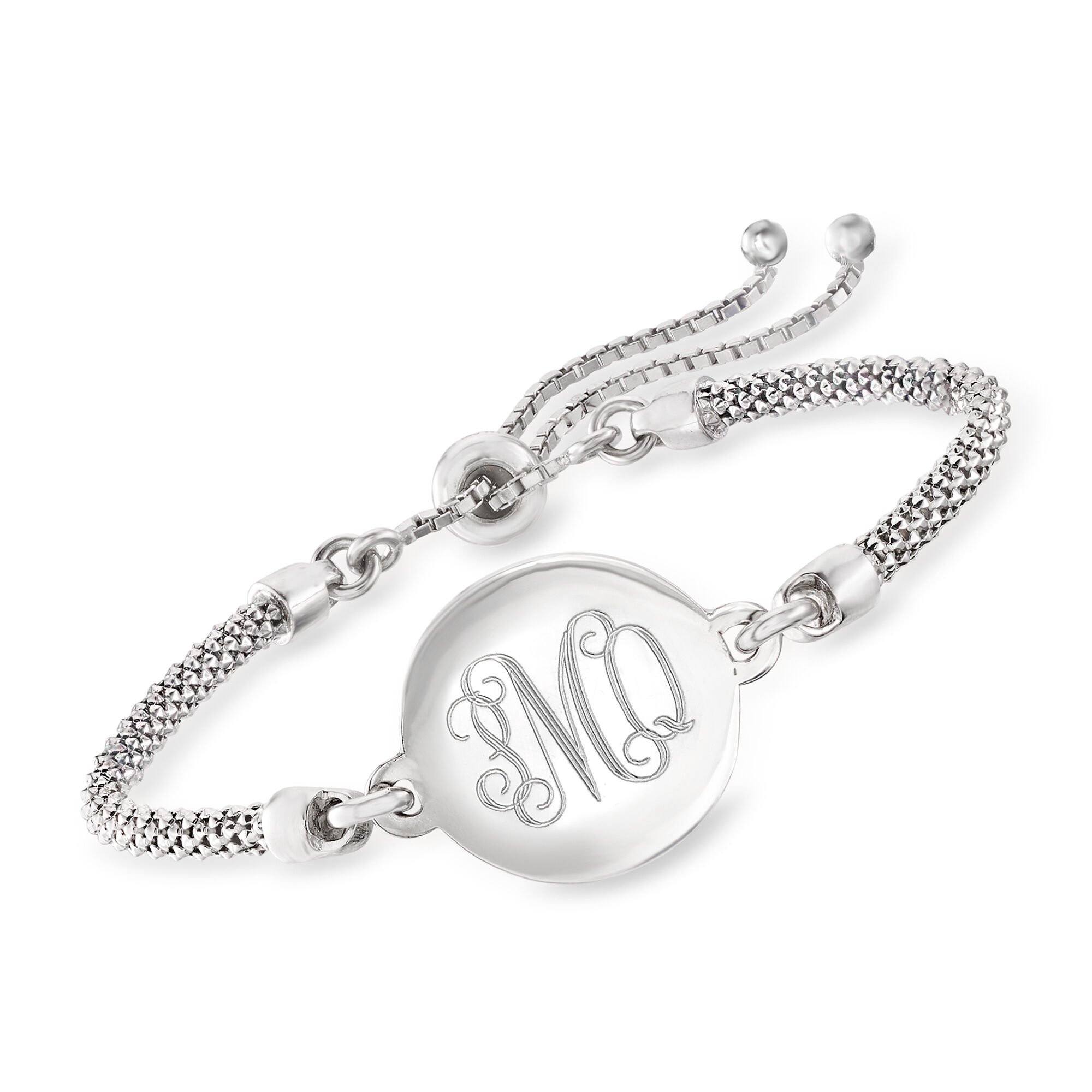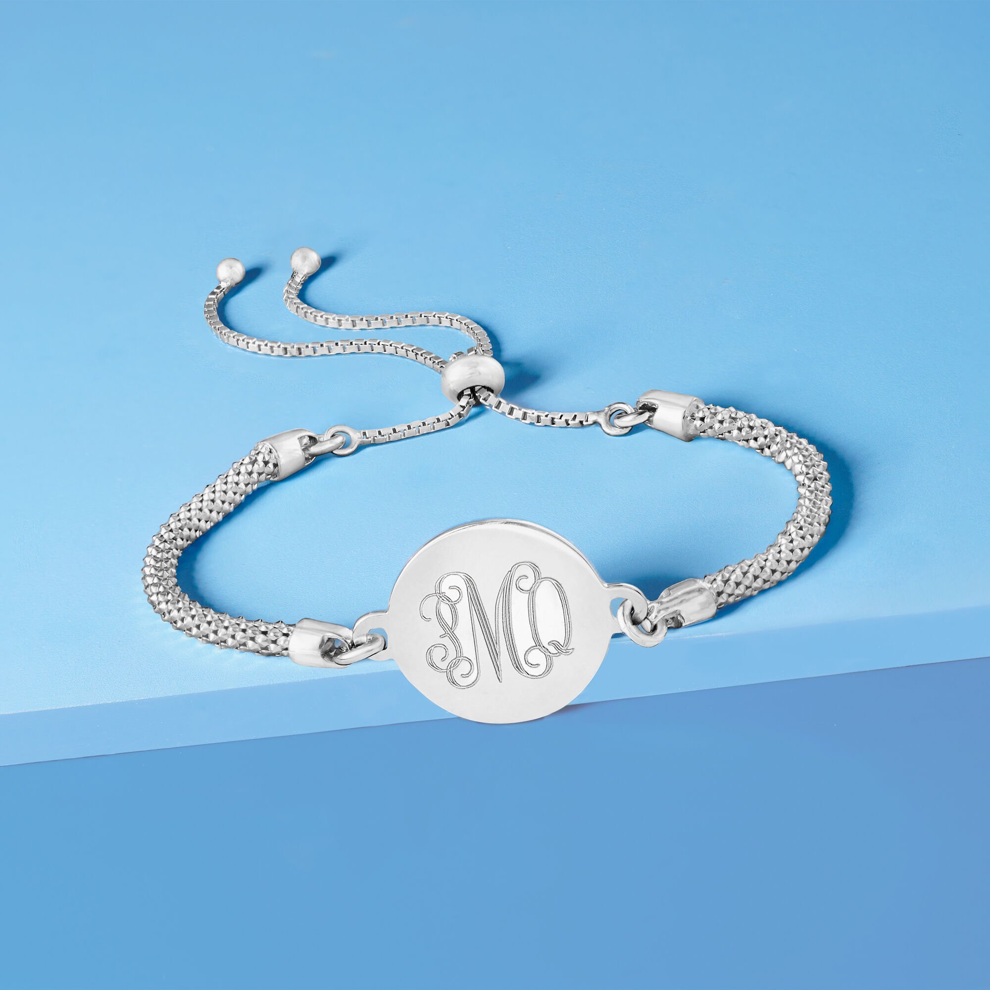 Sterling Silver Personalized Disc Popcorn-Chain Bolo Bracelet