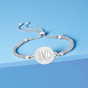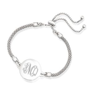 Sterling Silver Personalized Disc Popcorn-Chain Bolo Bracelet