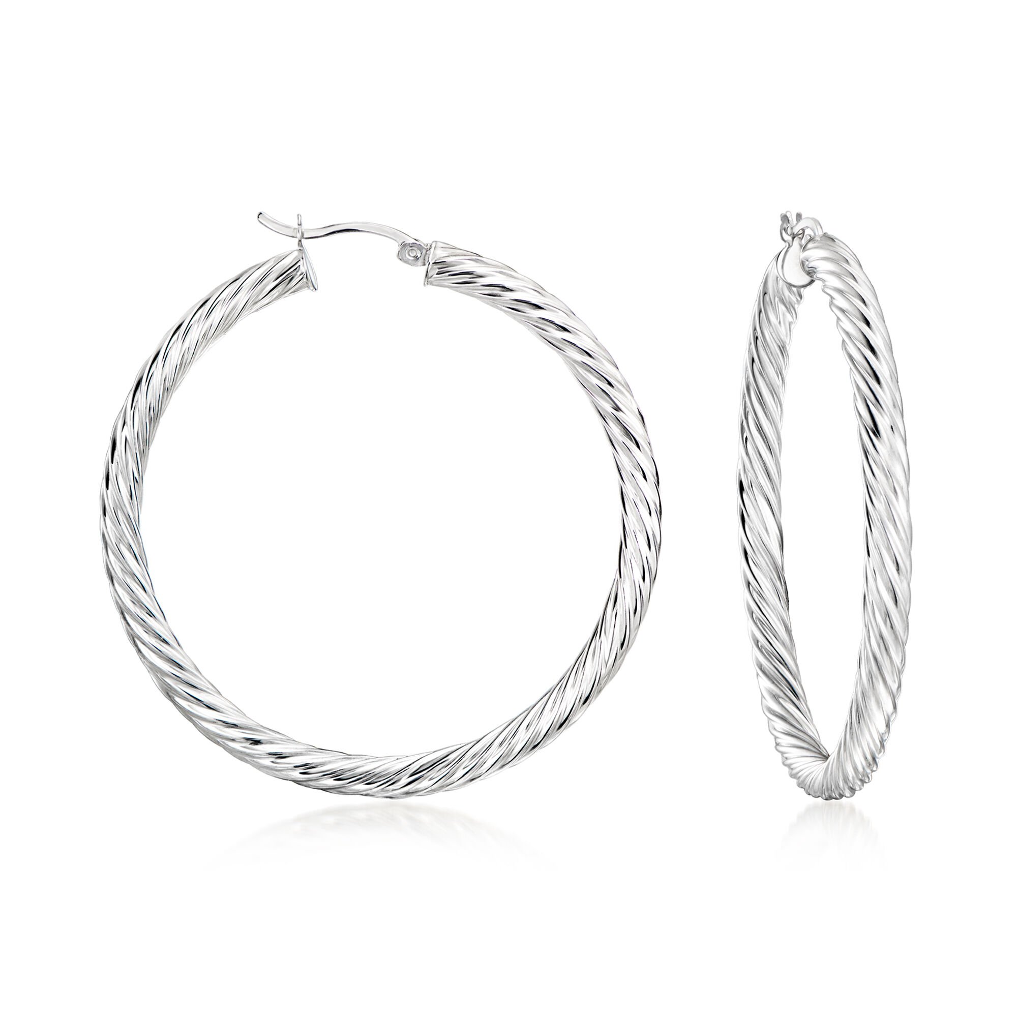 Sterling Silver Twisted Hoop Earrings. 2″