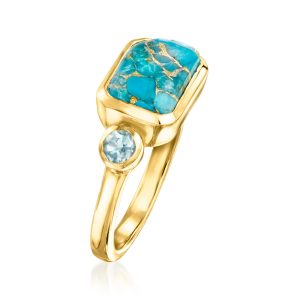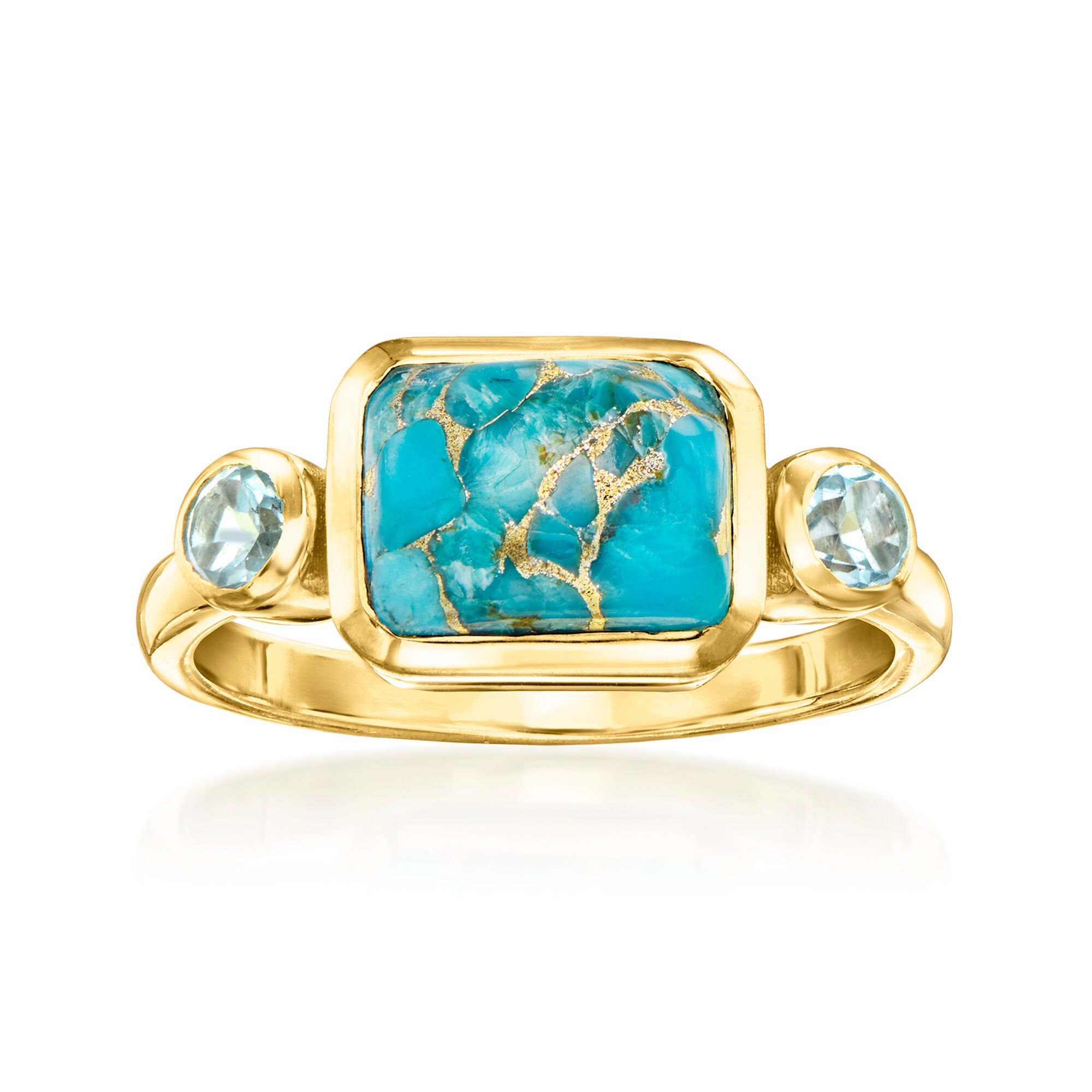 Turquoise and .20 ct. t.w. Sky Blue Topaz Ring in 18kt Gold Over Sterling
