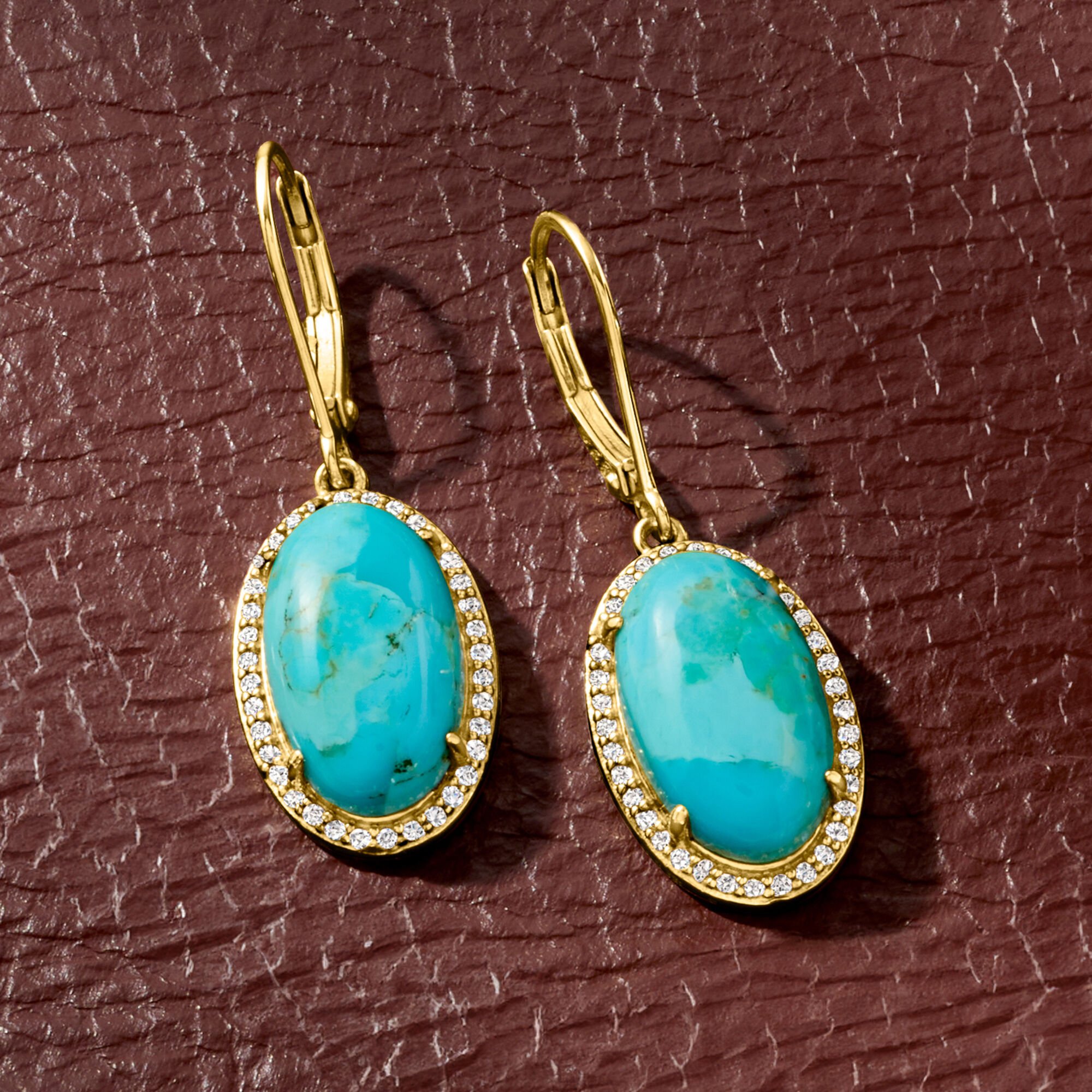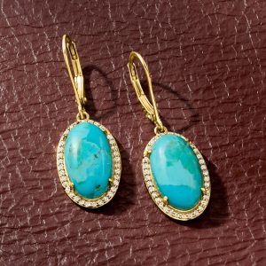 Turquoise and .40 ct. t.w. White Topaz Drop Earrings in 18kt Gold Over Sterling