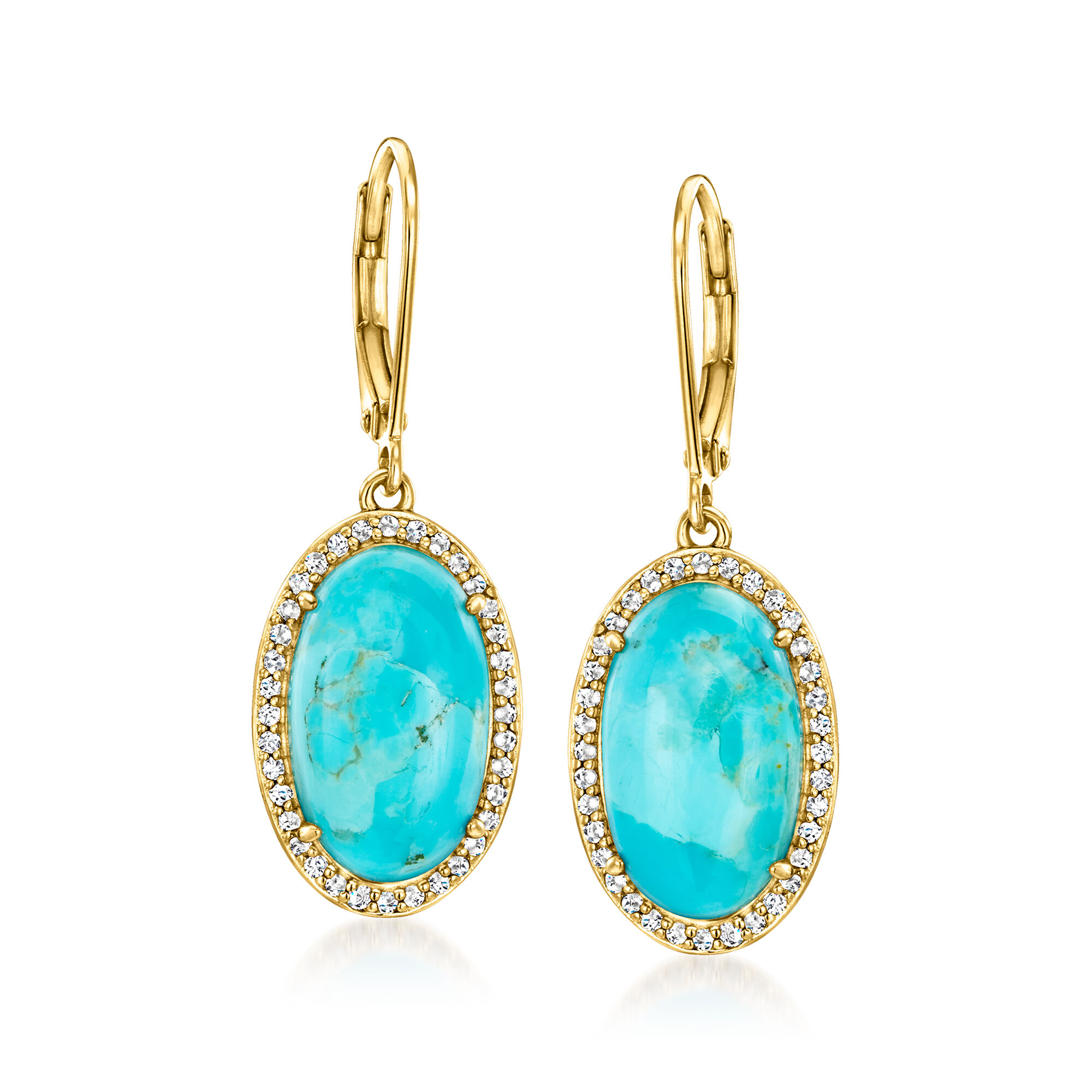 Turquoise and .40 ct. t.w. White Topaz Drop Earrings in 18kt Gold Over Sterling