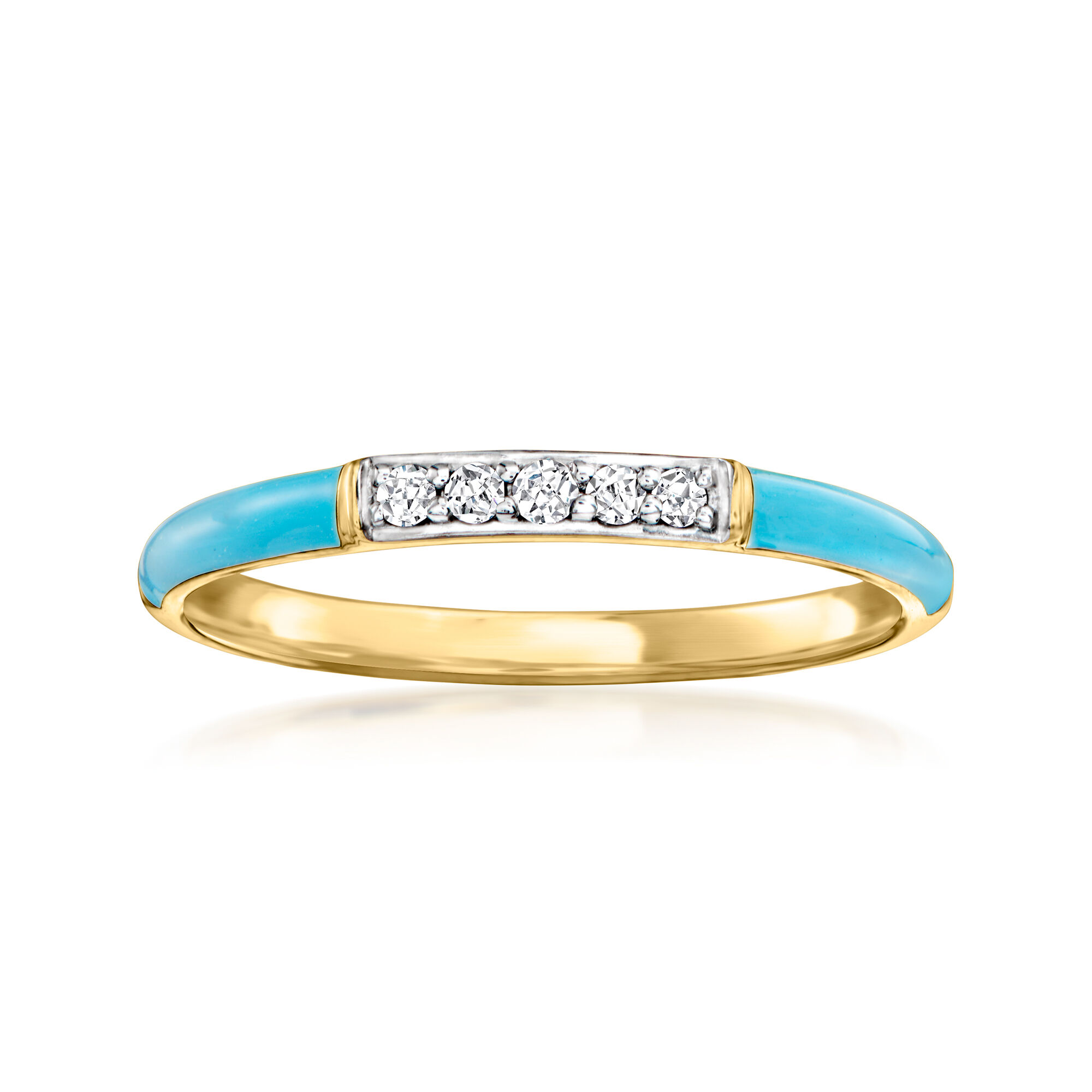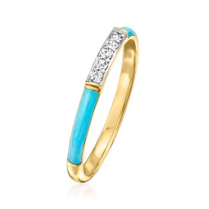 Turquoise Enamel Ring with Diamonds in 18kt Gold Over Sterling