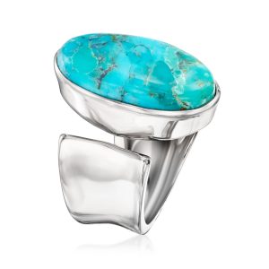Turquoise and .70 ct. t.w. Sky Blue Topaz Ring in 18kt Gold Over Sterling