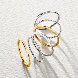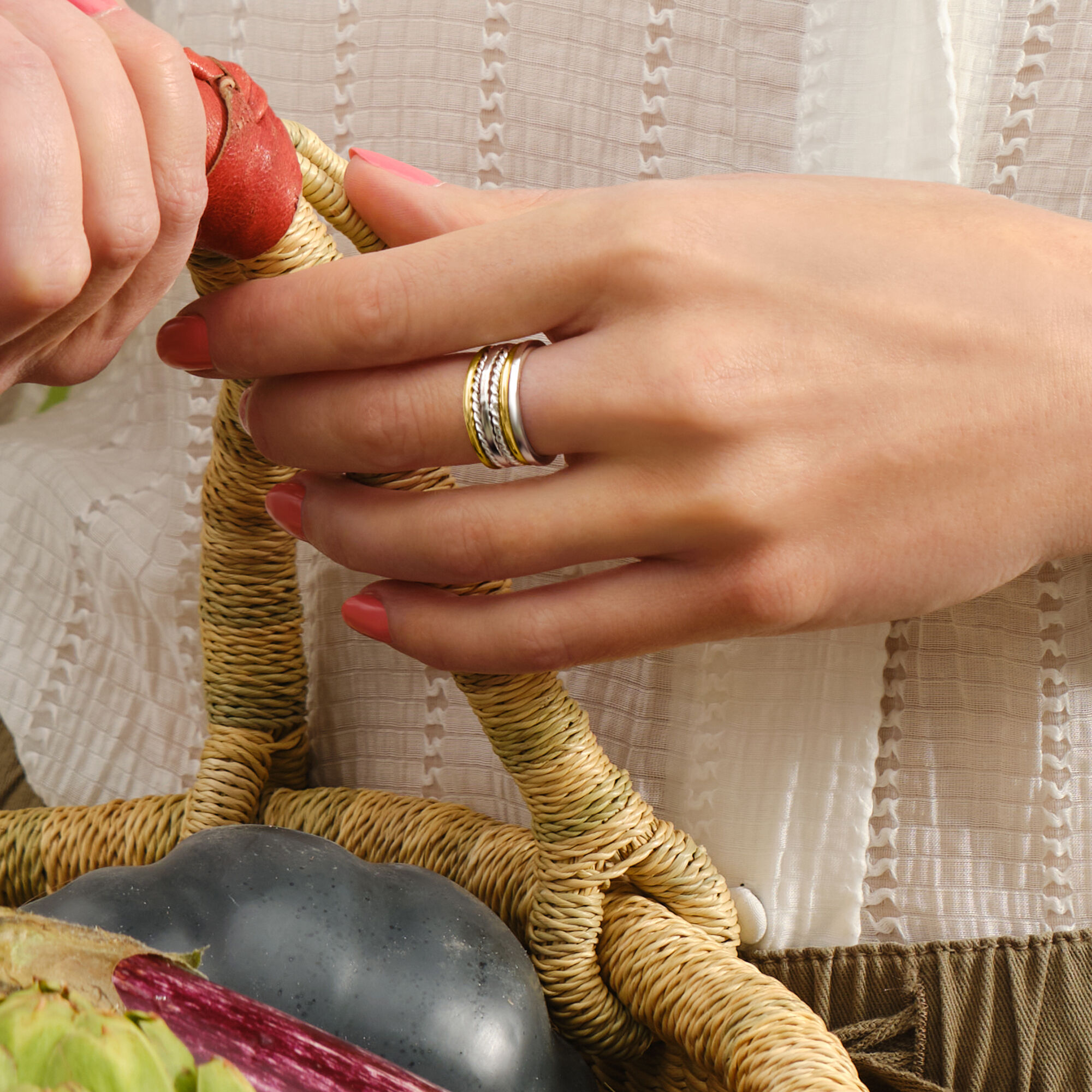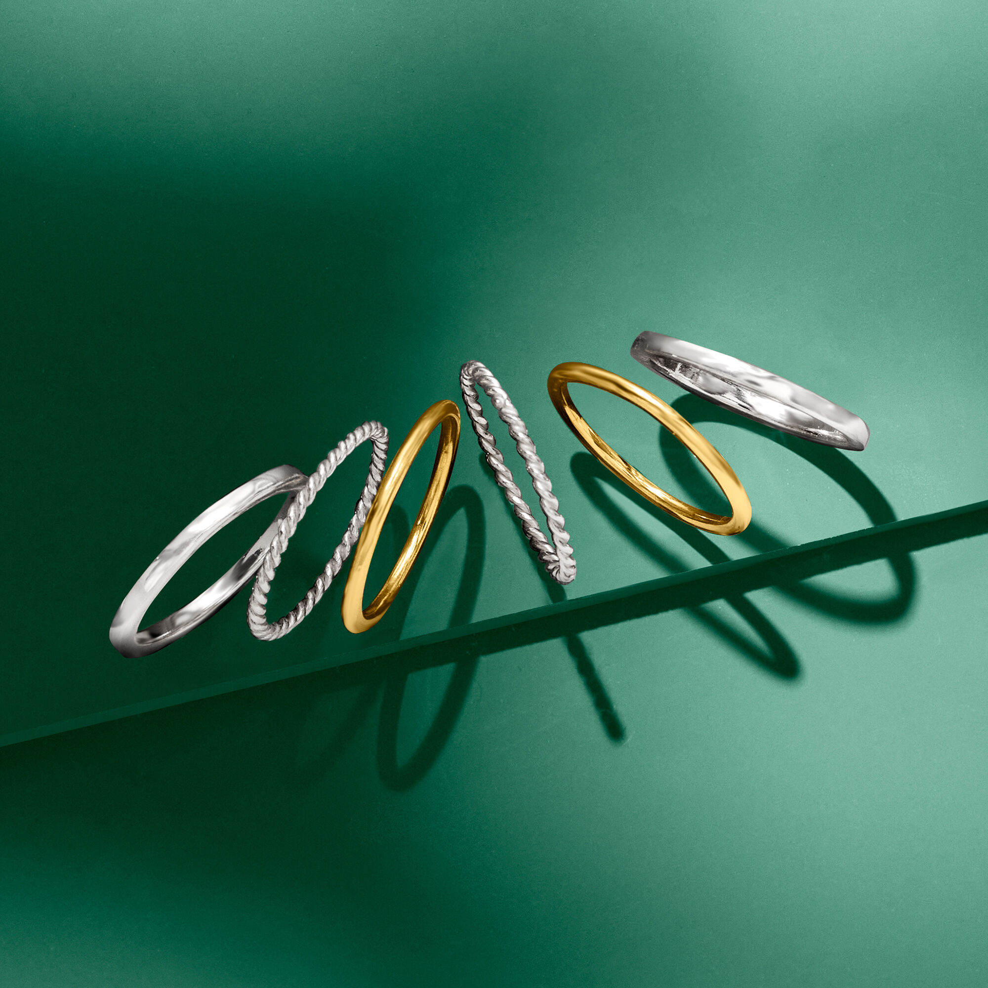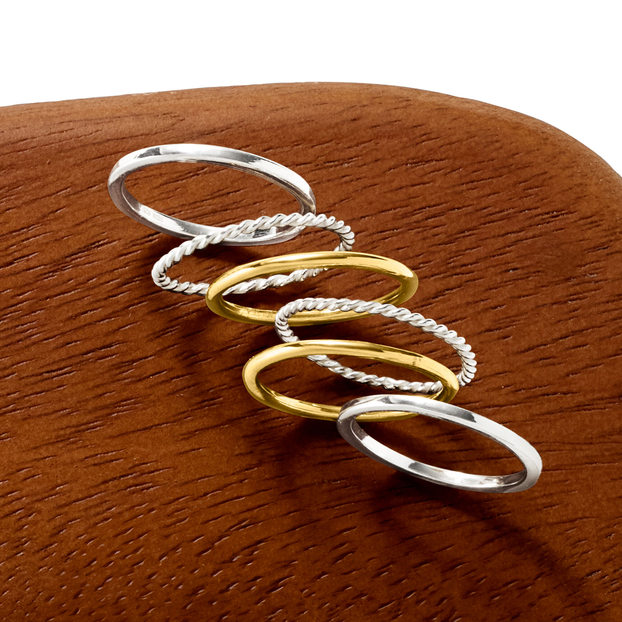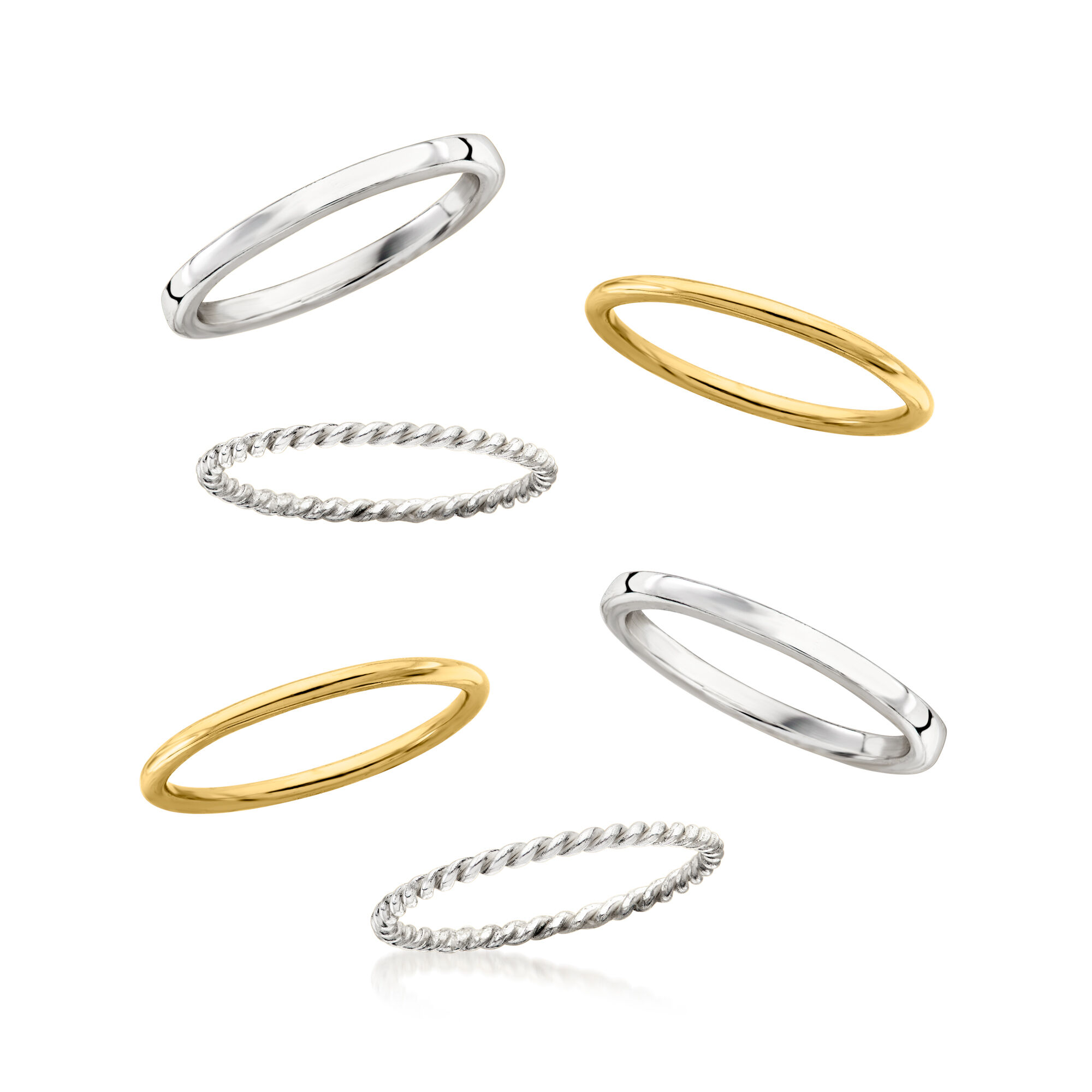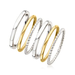 Two-Tone Sterling Silver Jewelry Set: Six Stackable Rings