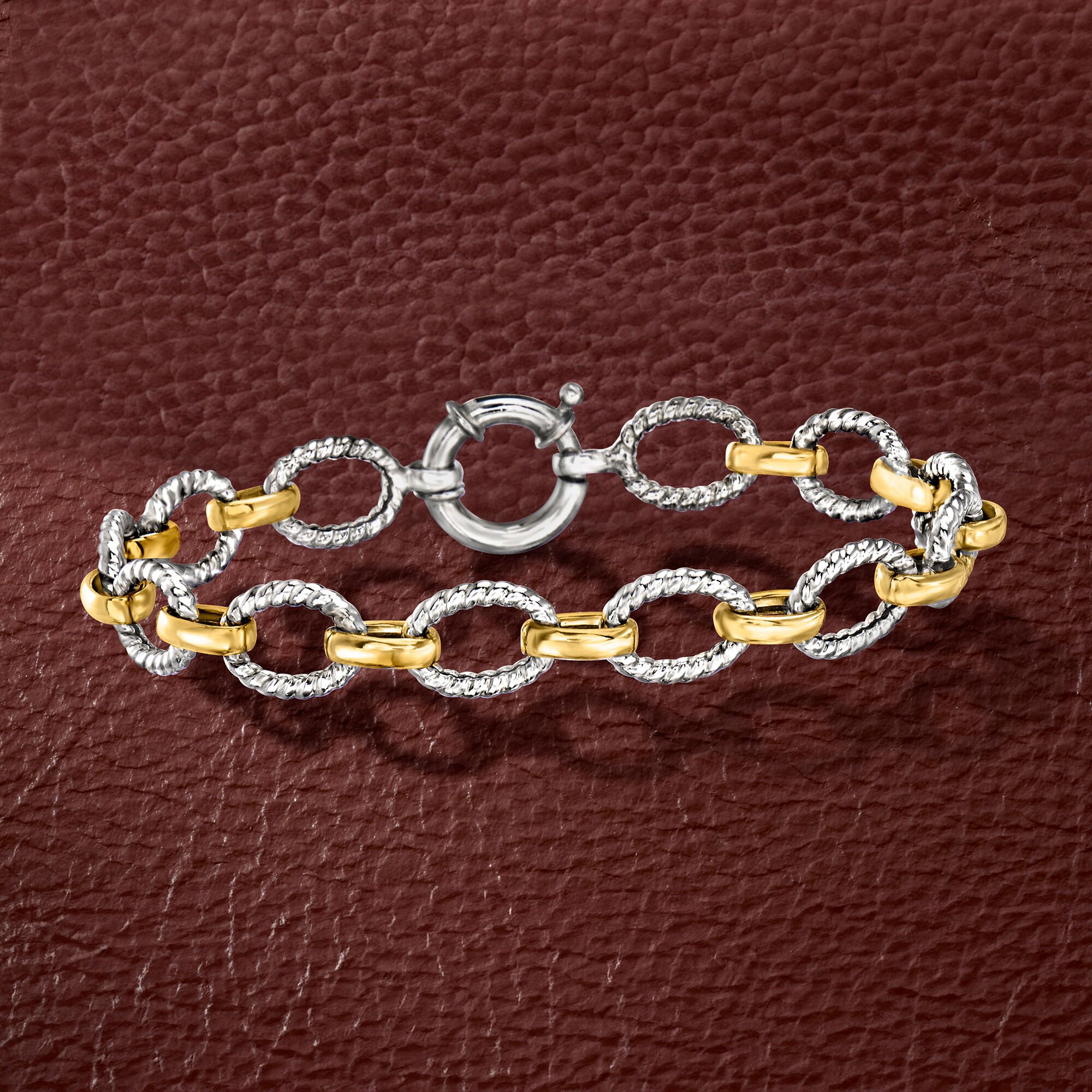 Sterling Silver and 18kt Gold Over Sterling Silver Twisted-Oval Link Bracelet