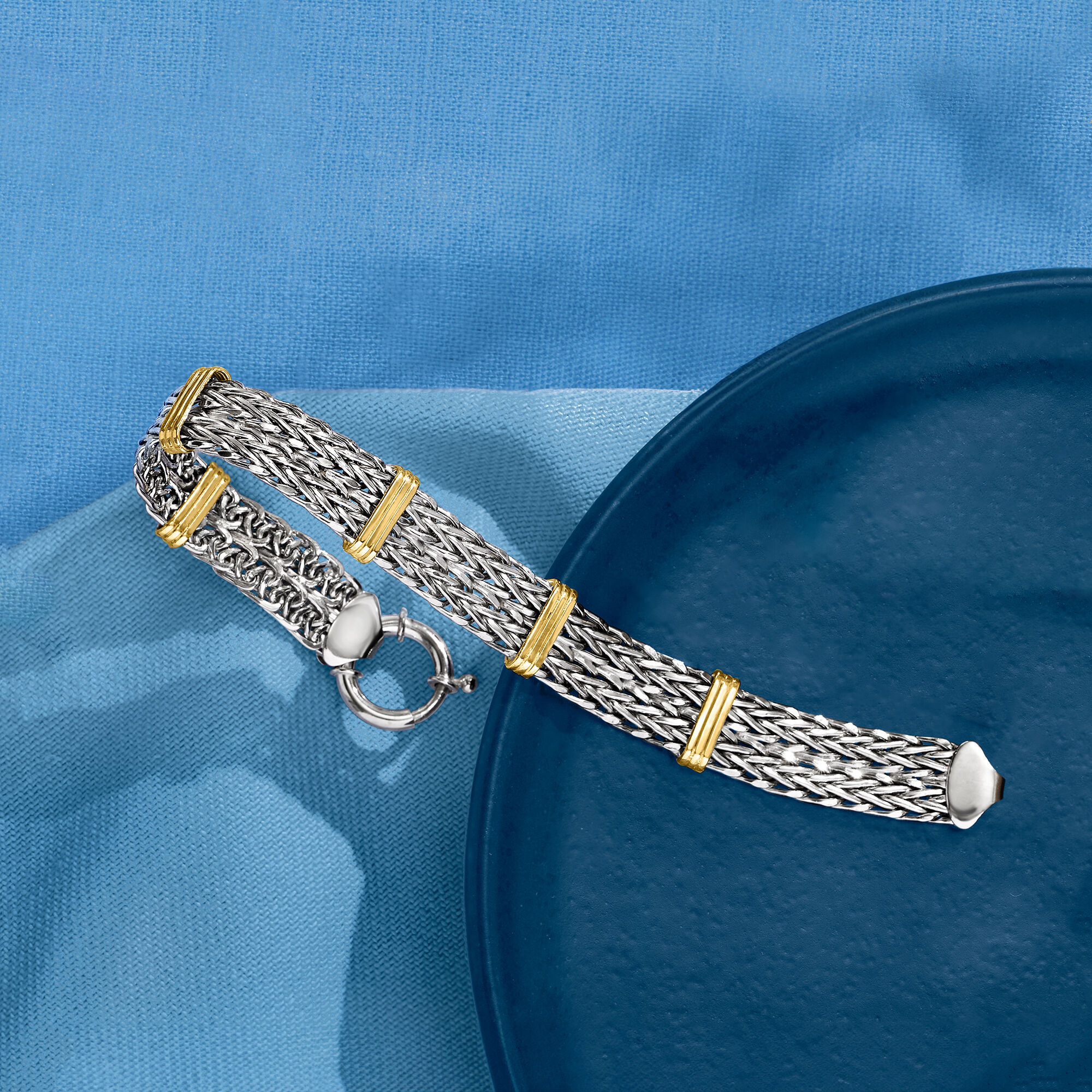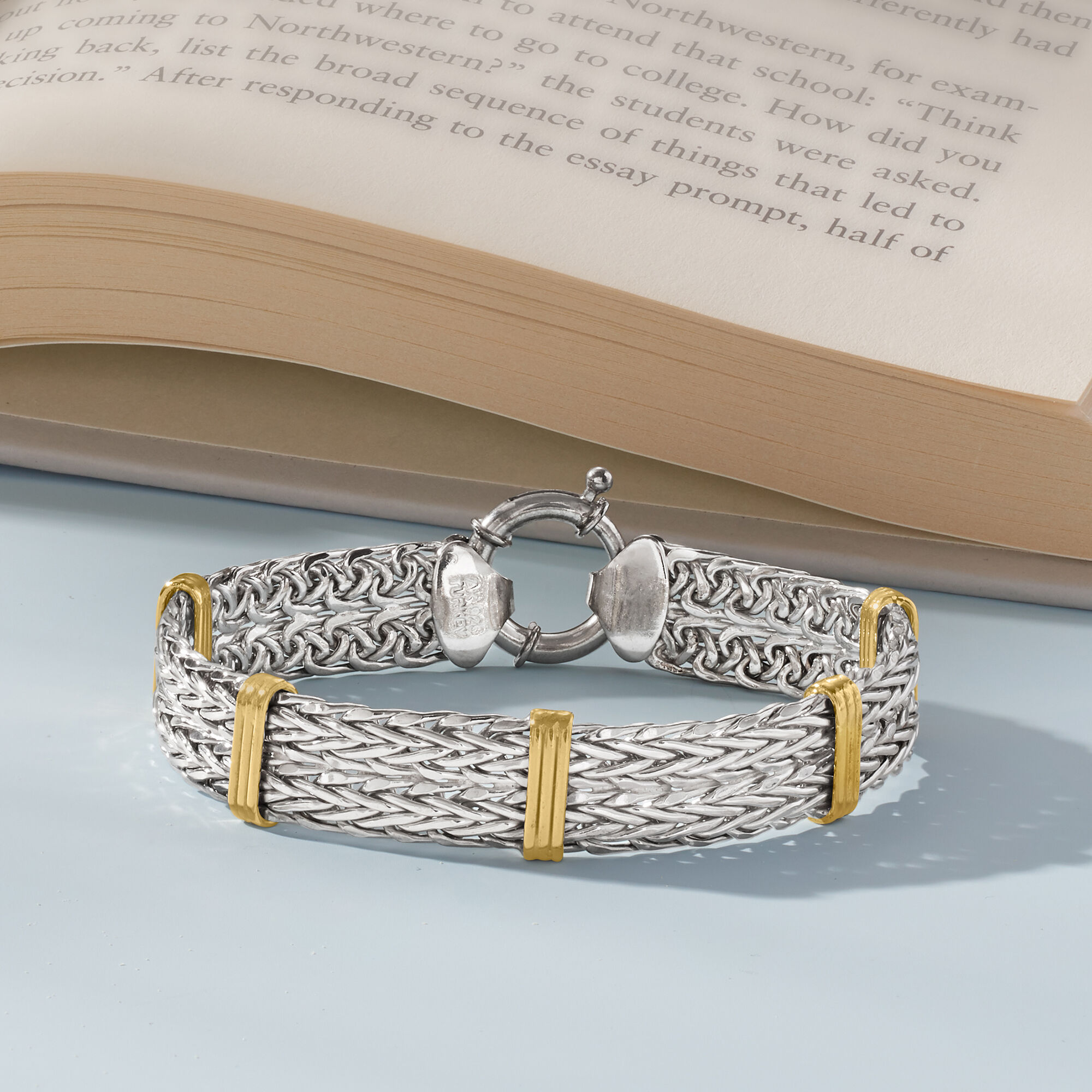 Two-Tone Sterling Silver Wheat-Link Bracelet