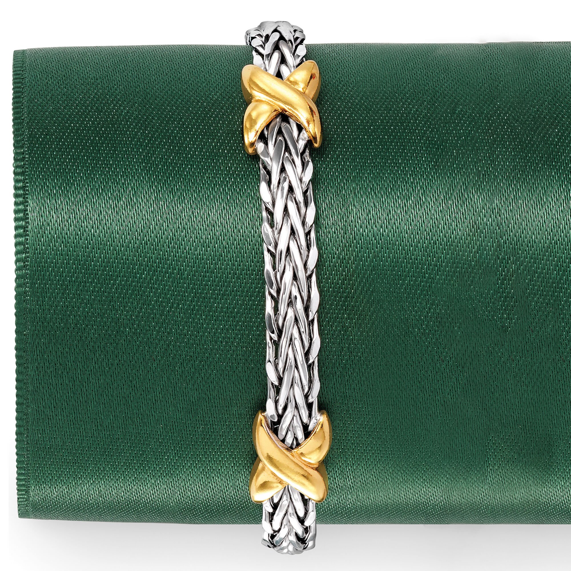Two-Tone Sterling Silver Wheat-Link X Station Bracelet